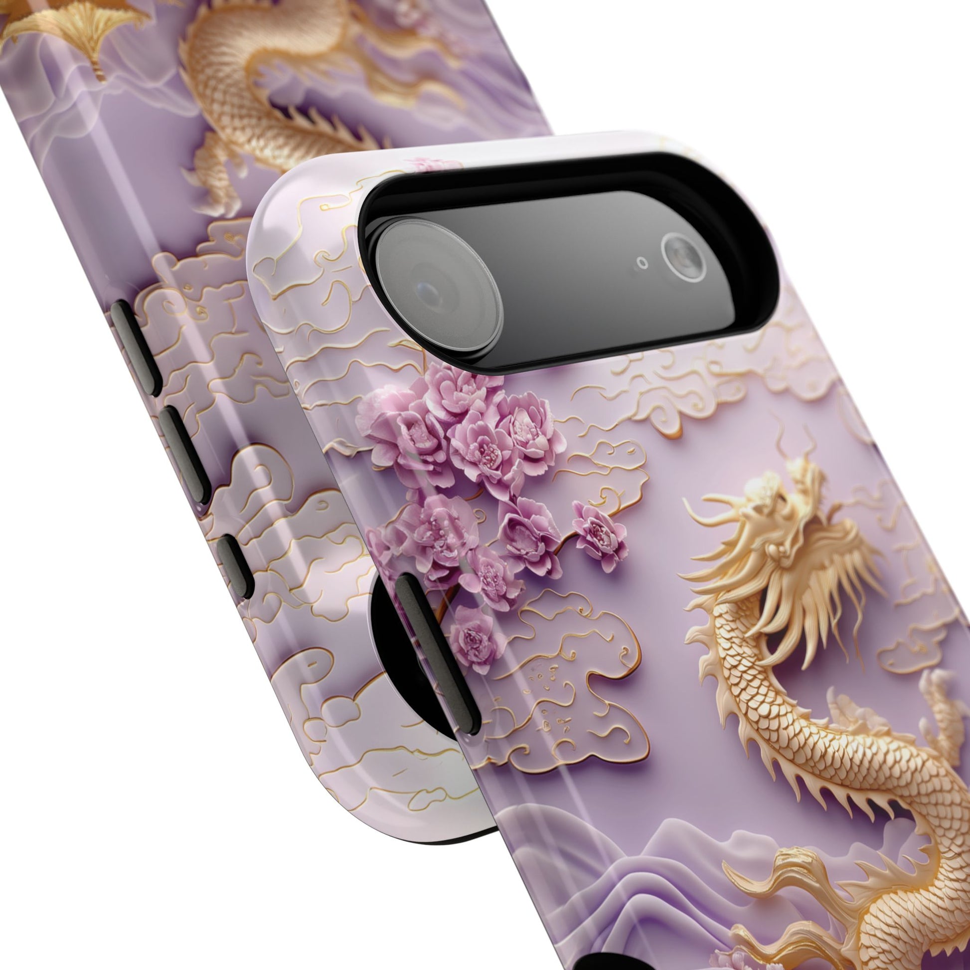 Premium quality protective phone case for iPhone with 3D Effect Dragon & Floral Asian Art design.