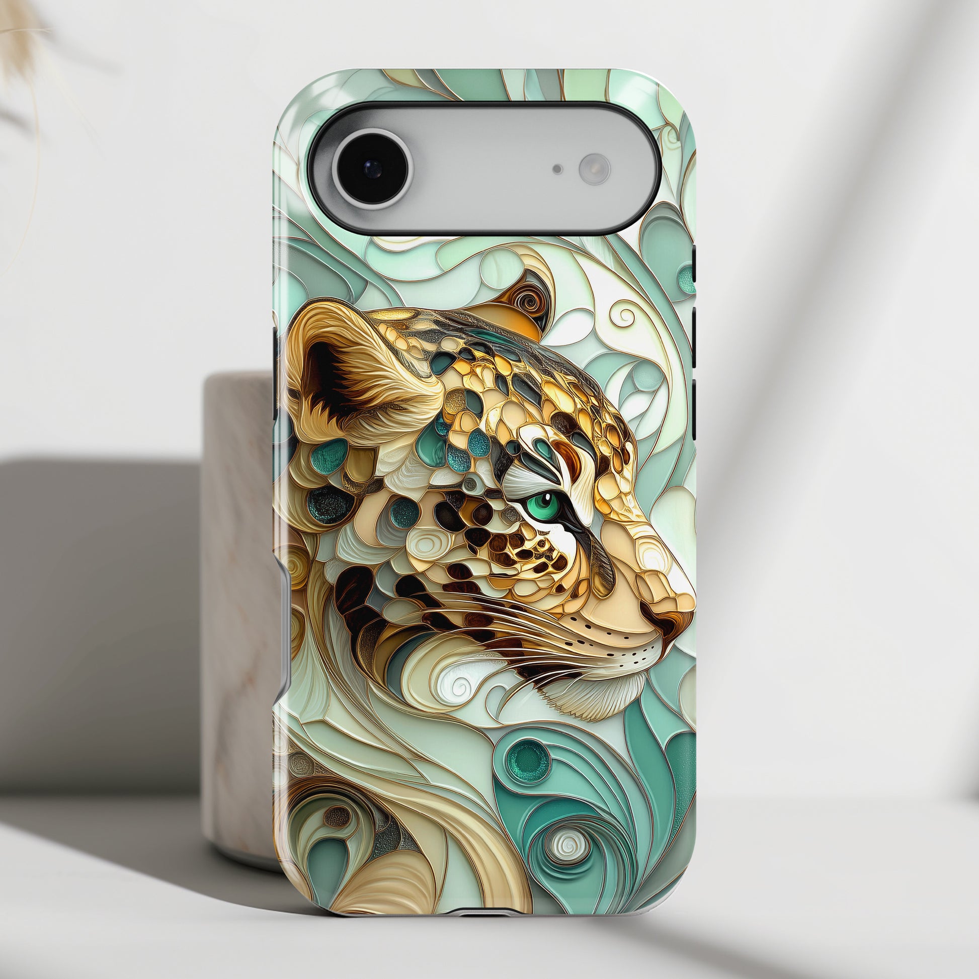 Premium quality protective phone case for iPhone with 3D Leopard Art design.