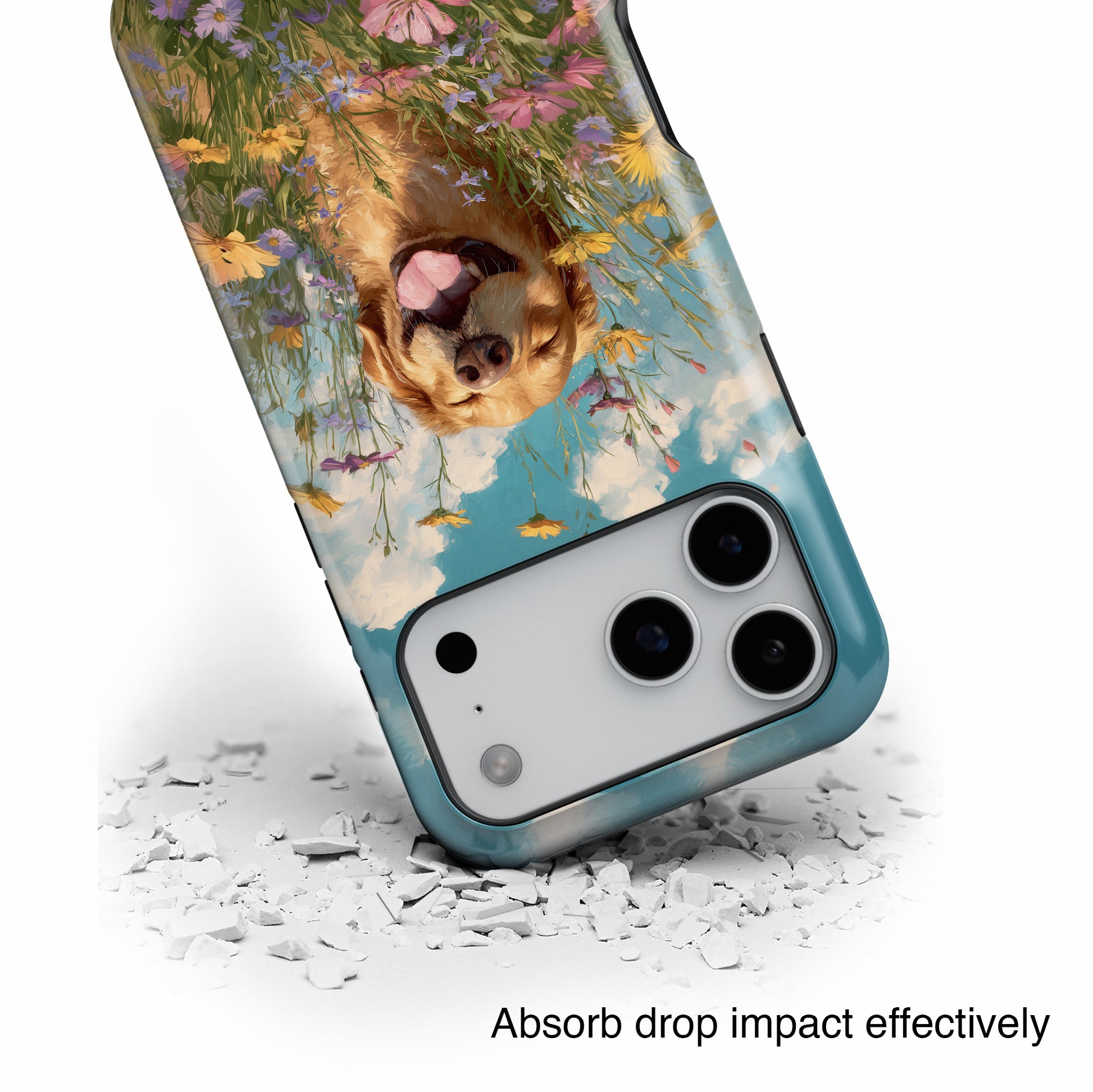 Meet the ultimate optimist. Our "Golden Hour" case showcases a happy Golden Retriever lost in a moment of wildflower whimsy. Whether he's dreaming of treats or just enjoying the breeze, his expression is one of absolute peace.
