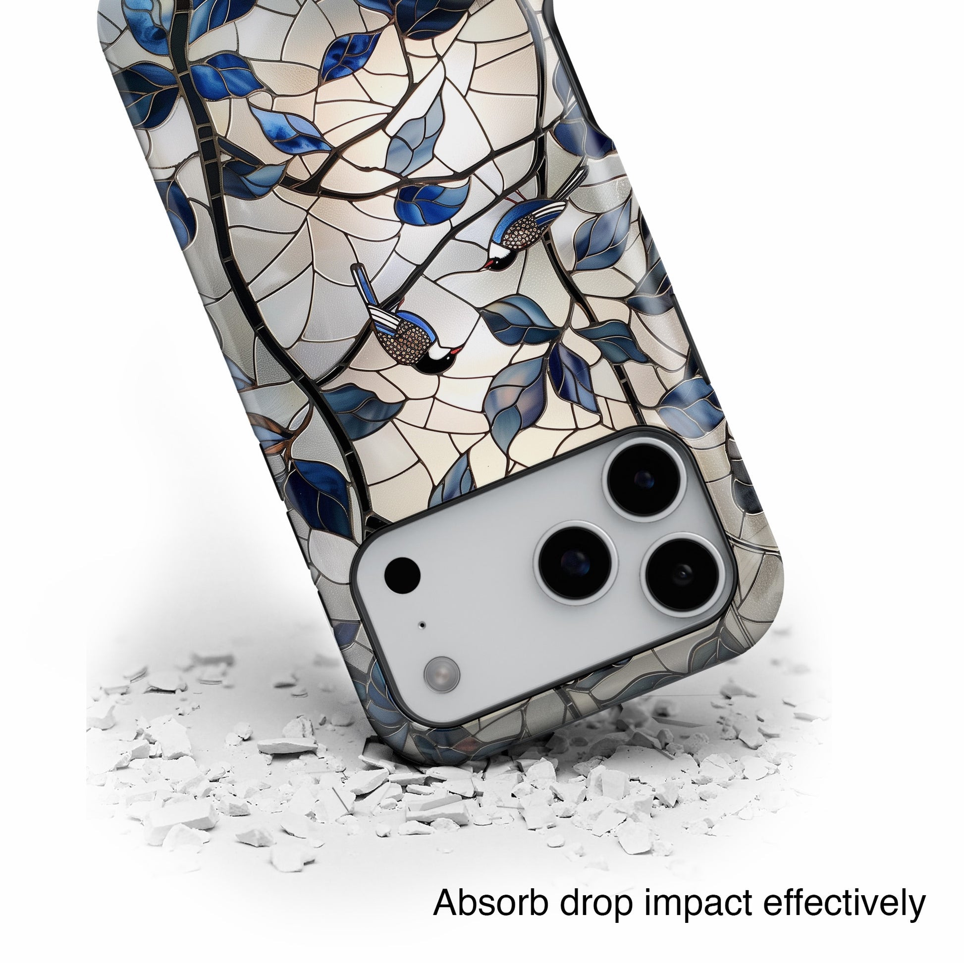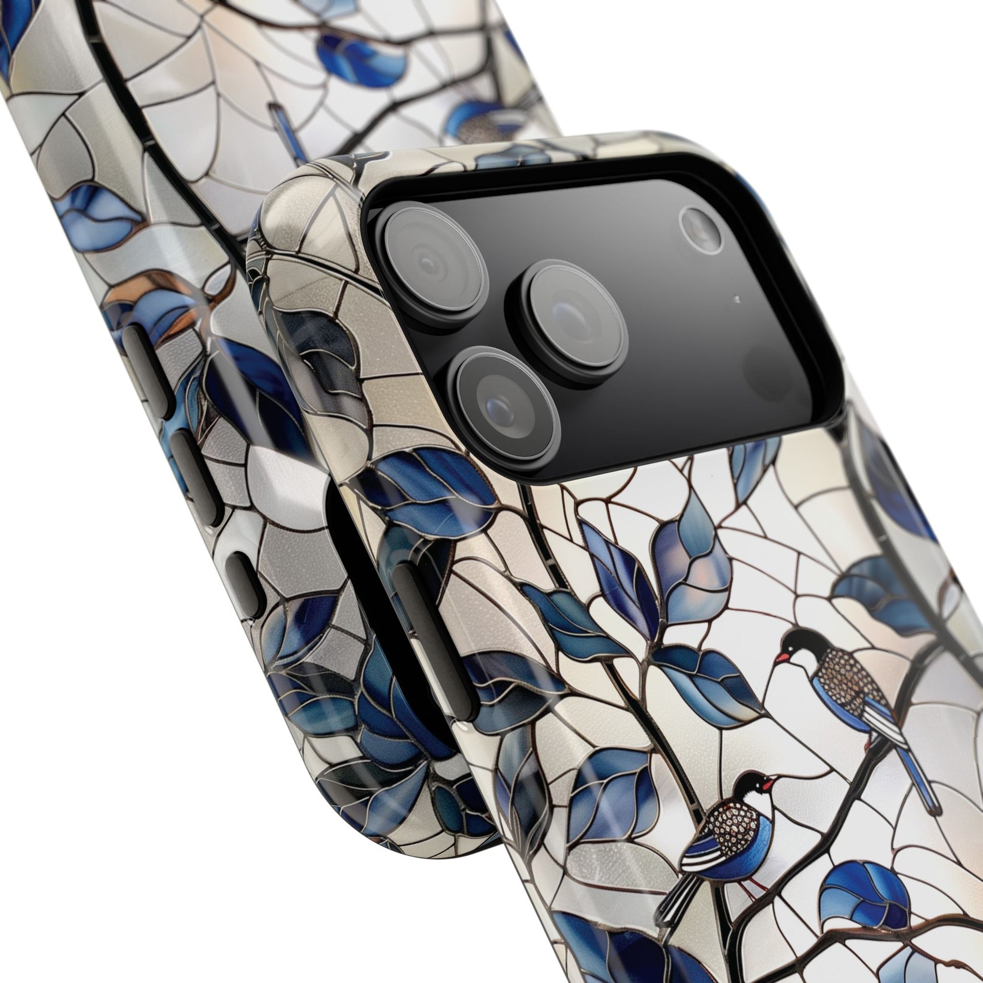 Premium quality protective phone case for iPhone in Birds in Tree Stained Glass design.