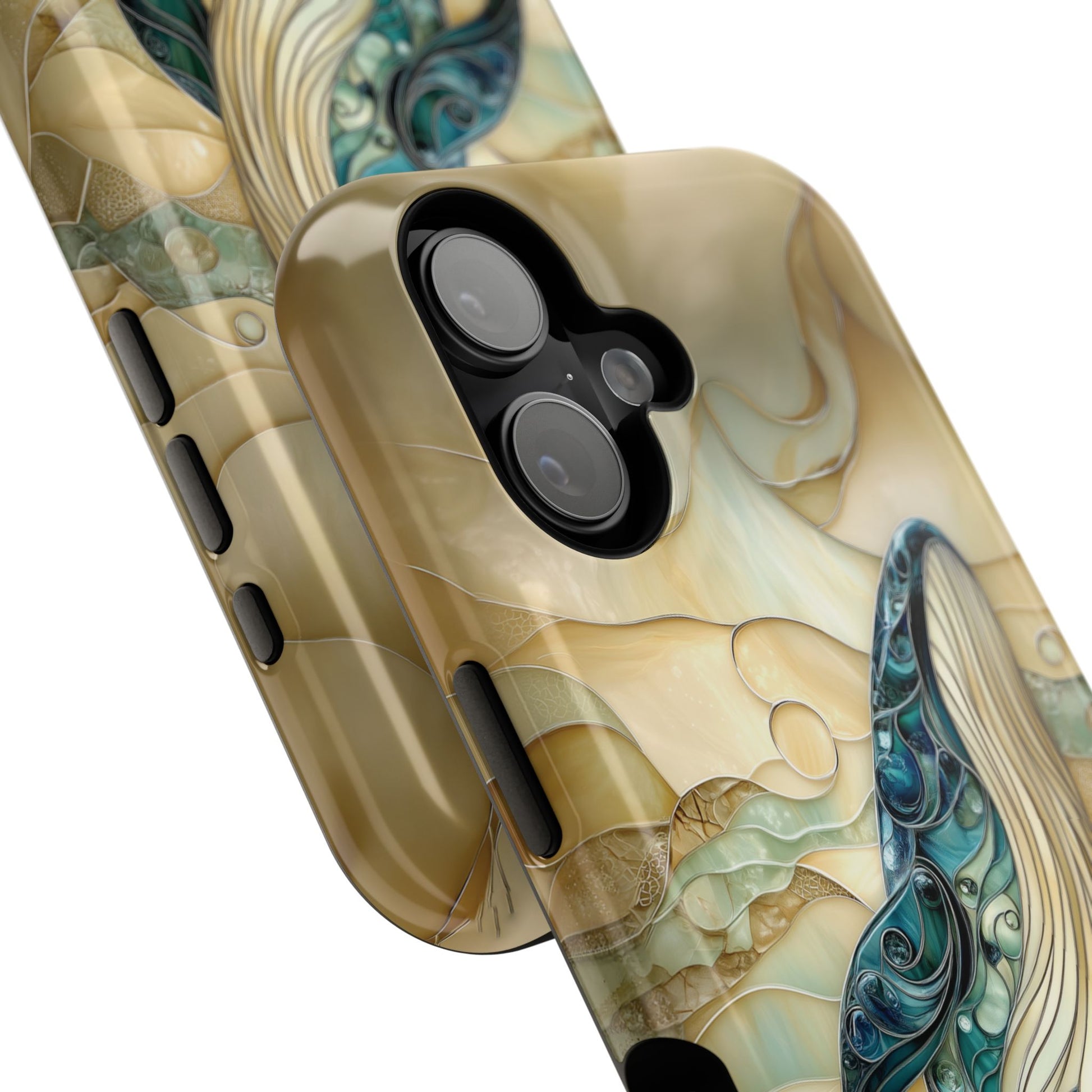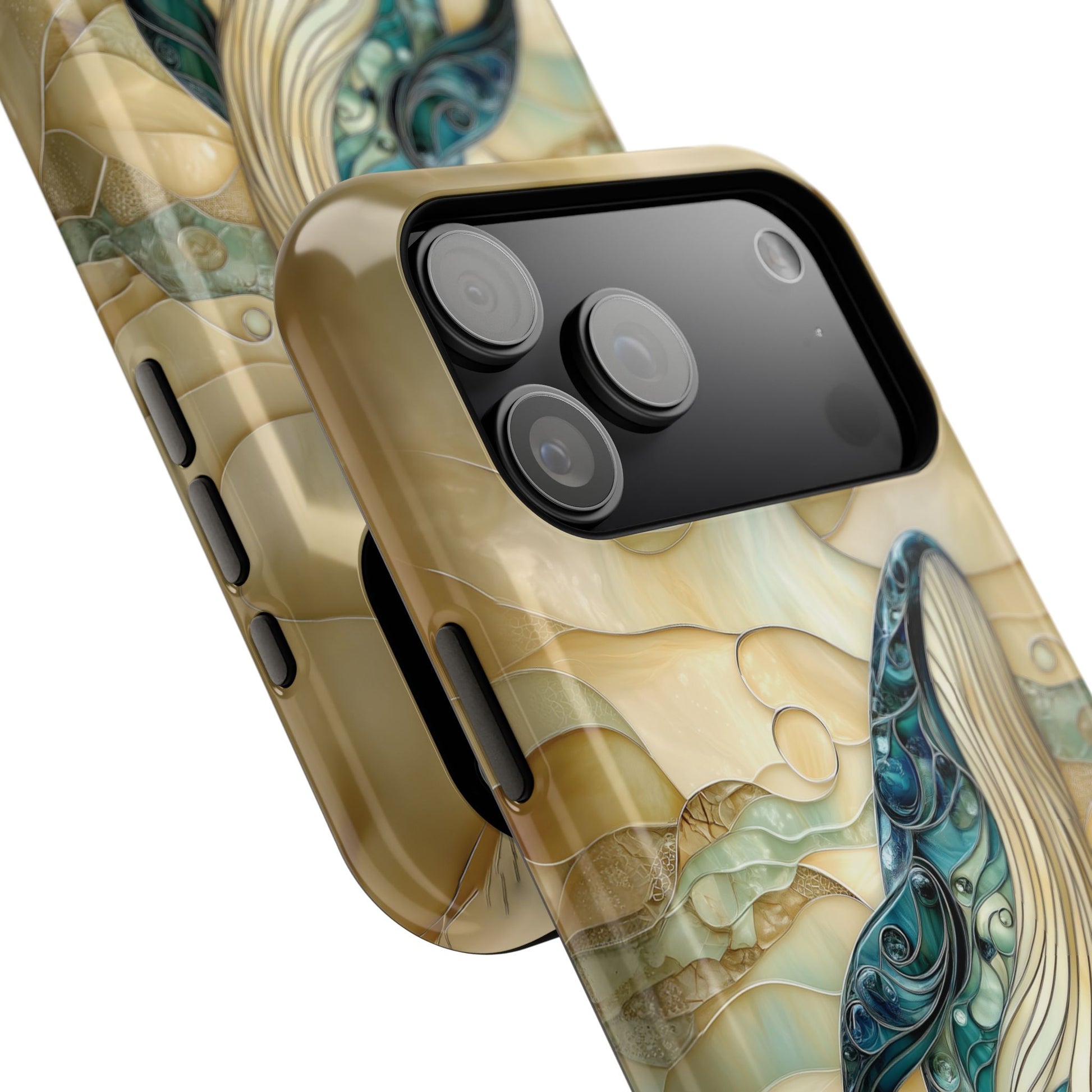 Premium quality protective phone case for iPhone with Blue Whale Stained Glass design.
