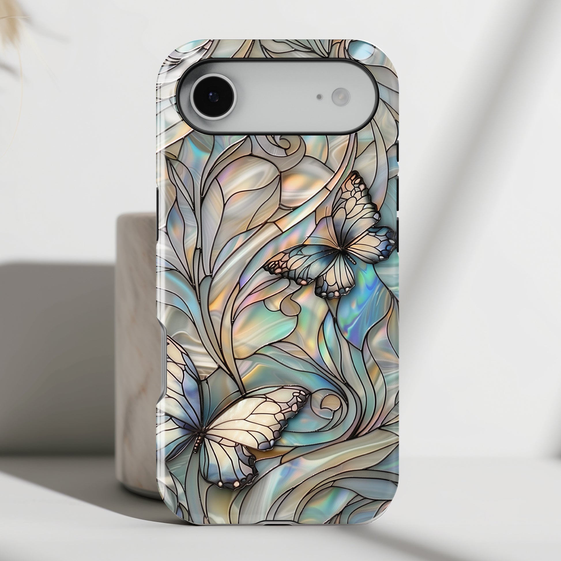 Premium quality protective phone case for iPhone in butterflies Stained Glass design.