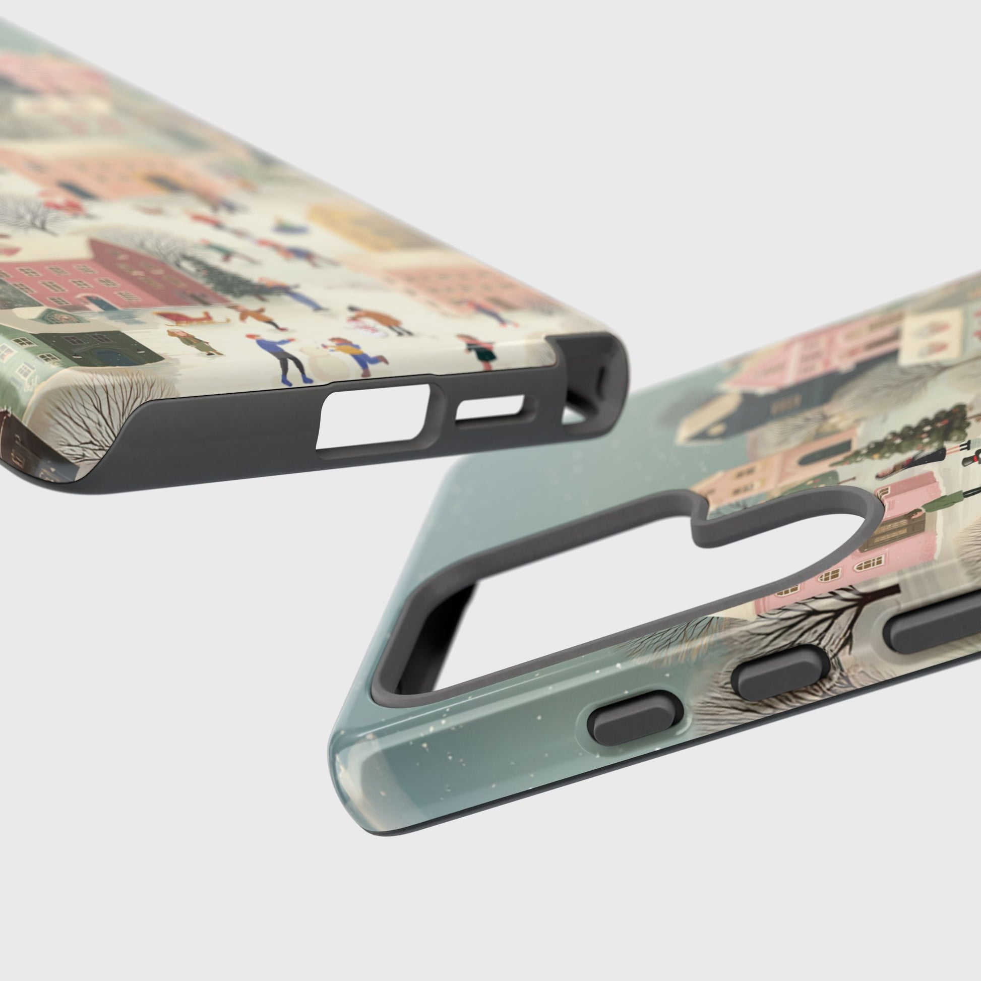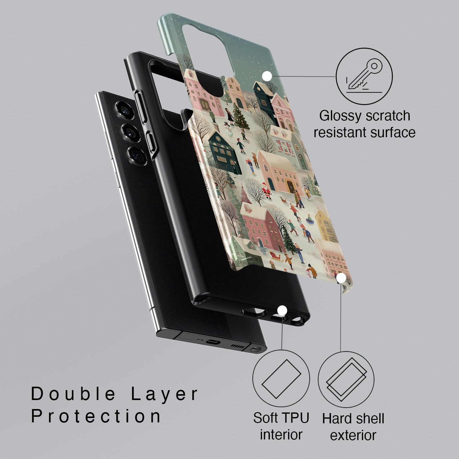 Premium quality protective phone case for Samsung Galaxy S series with Christmas Village Design.