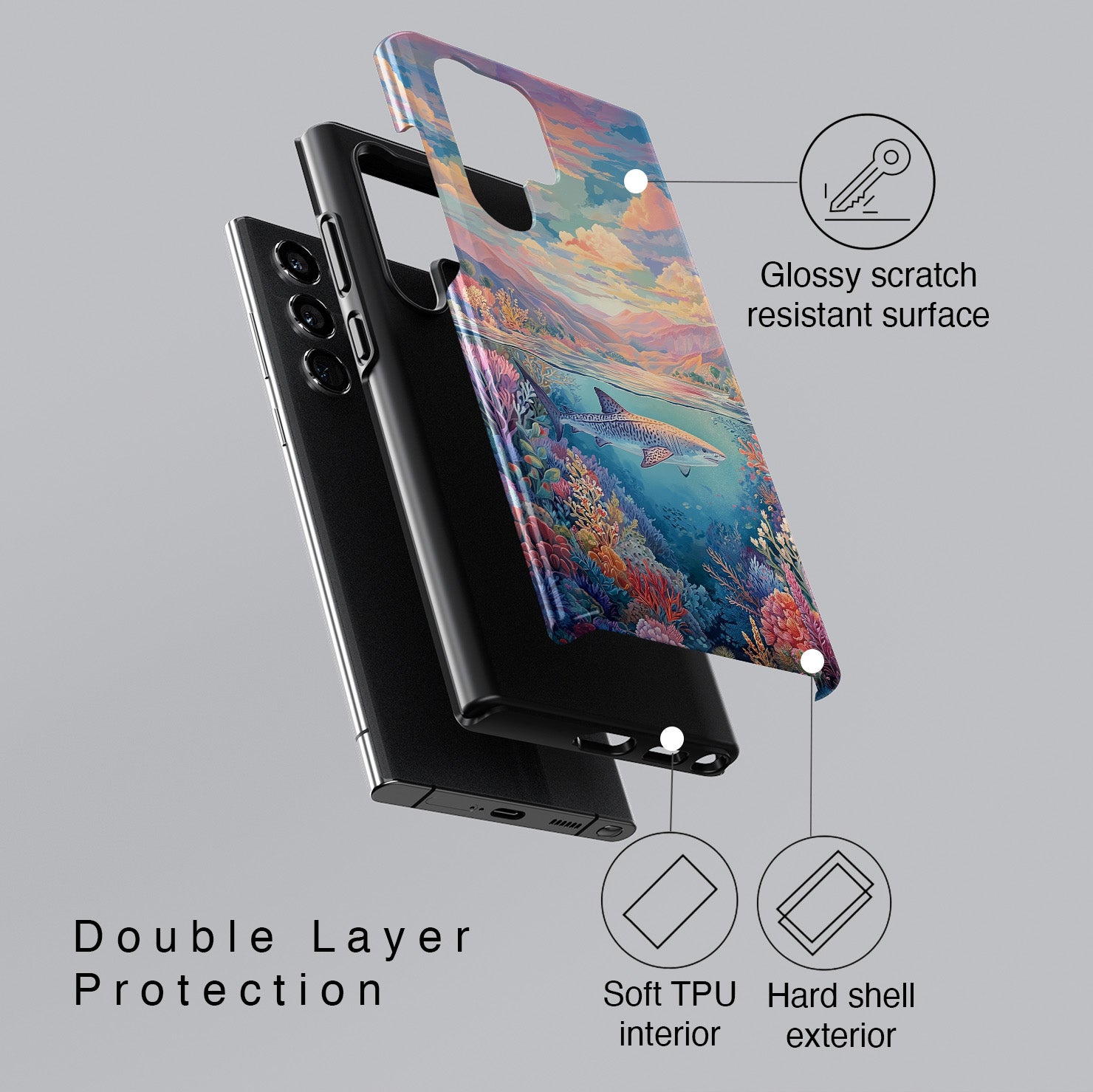 Premium quality protective phone case for Samsung Galaxy S series with Coral Horizon Design.