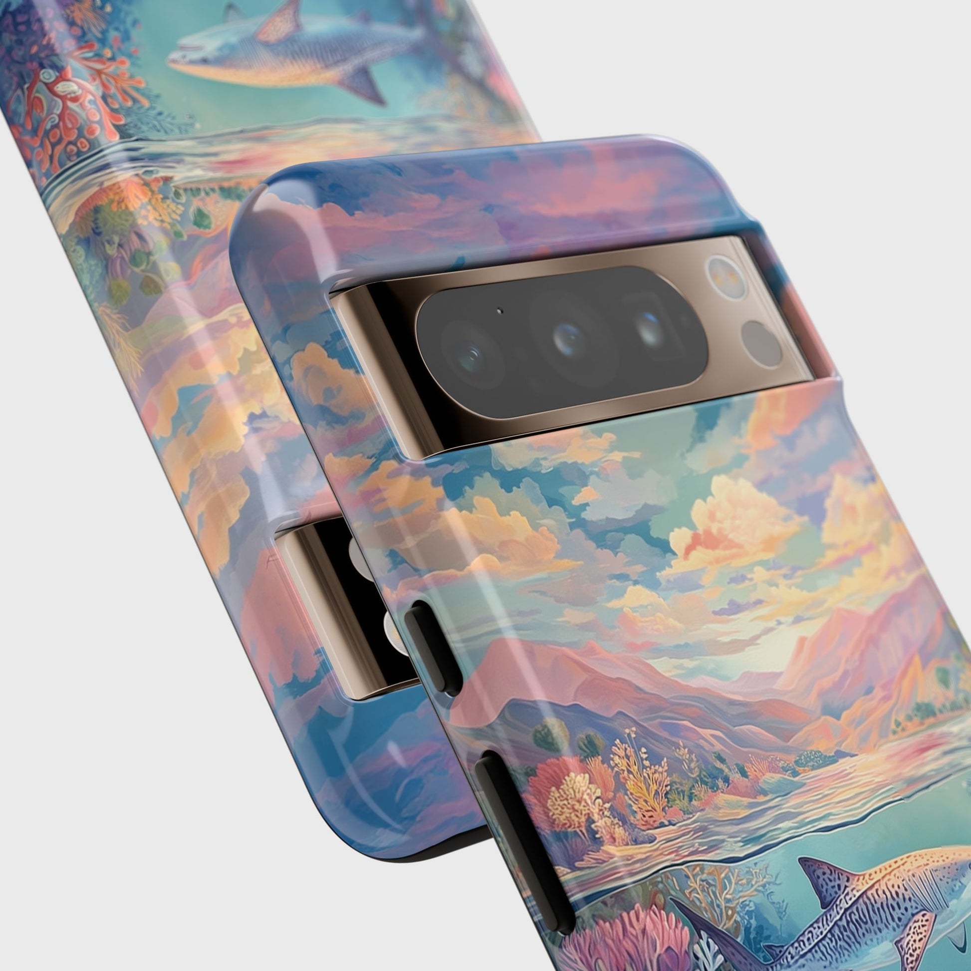 Premium quality protective phone case for Google Pixel series with Coral Horizon Design.