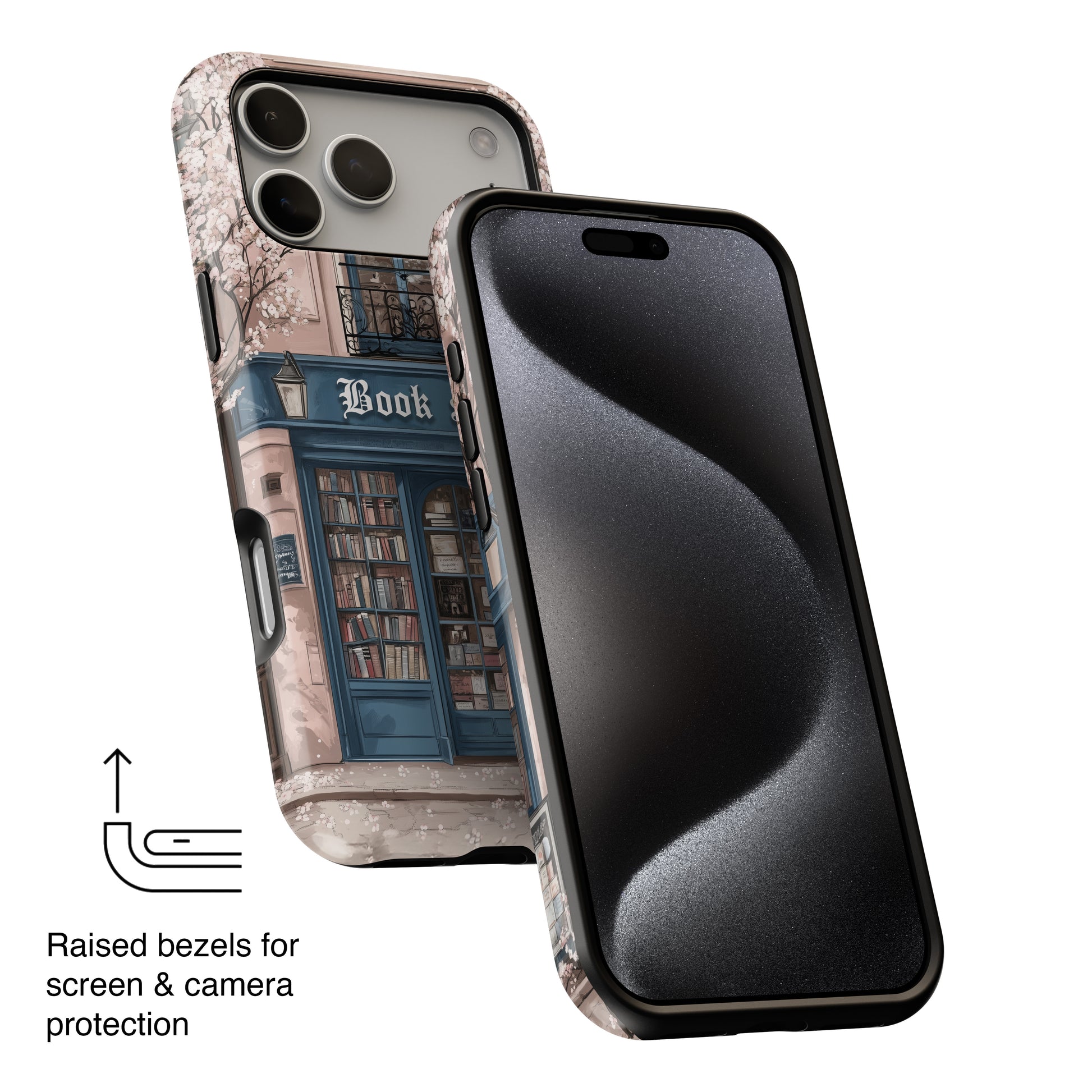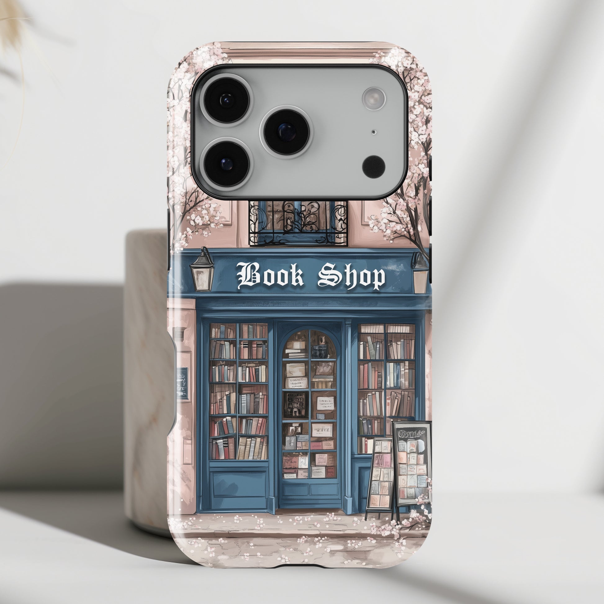 Premium quality protective phone case for iPhone with Cozy Book Shop design.
