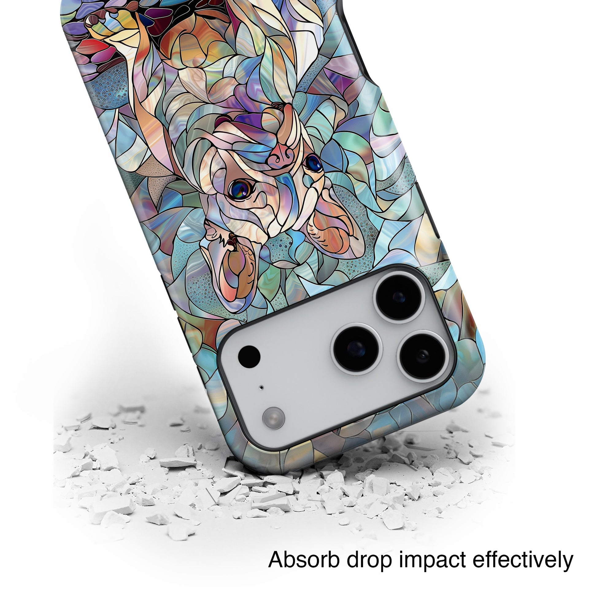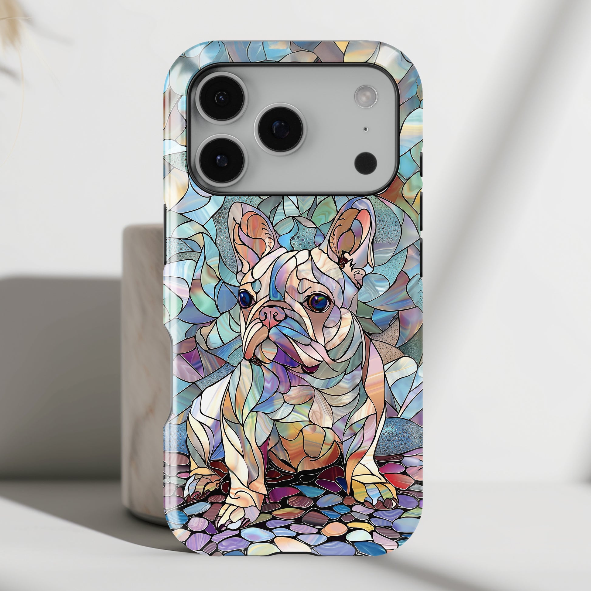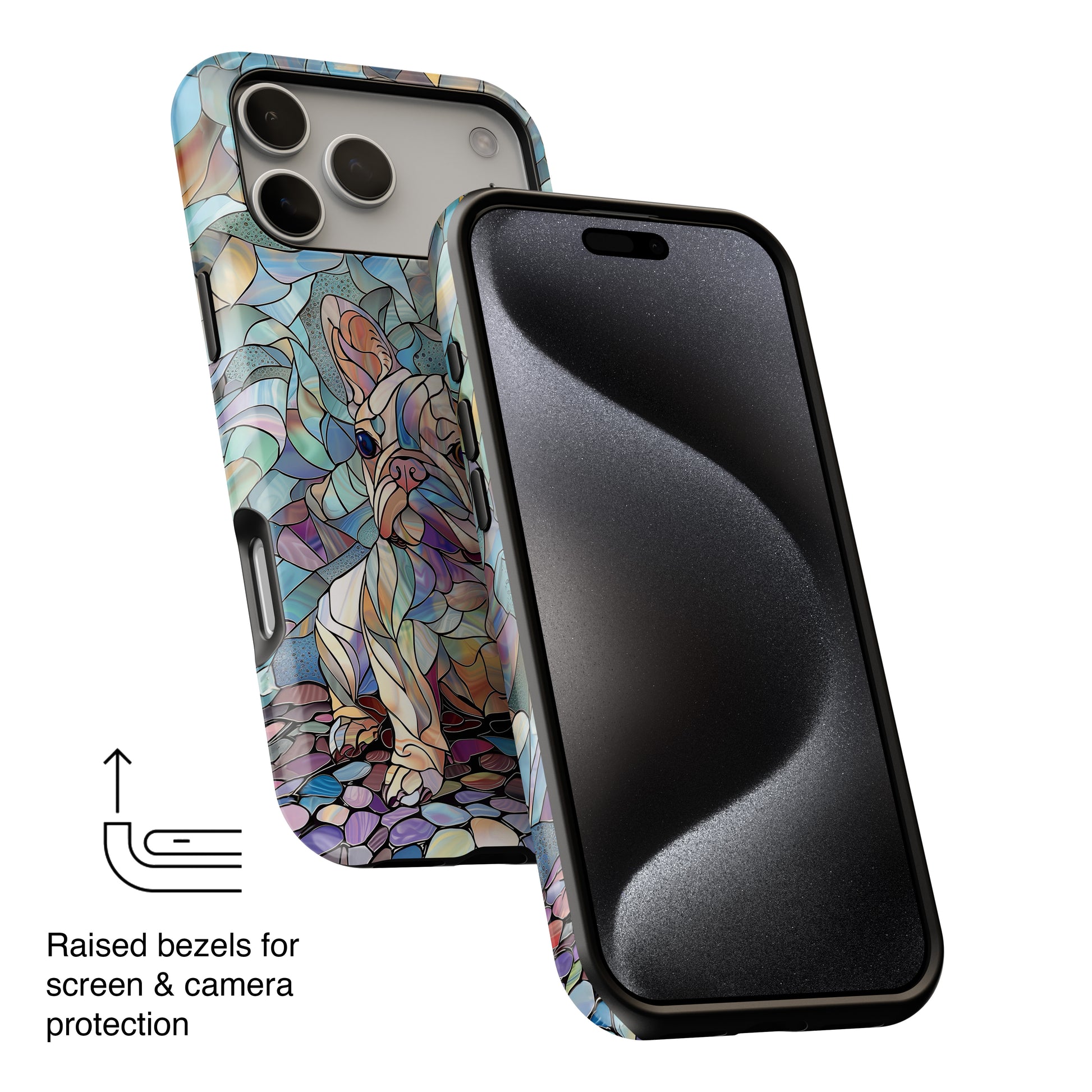 Premium quality protective phone case for iPhone in Cute French Bulldog Stained Glass design.
