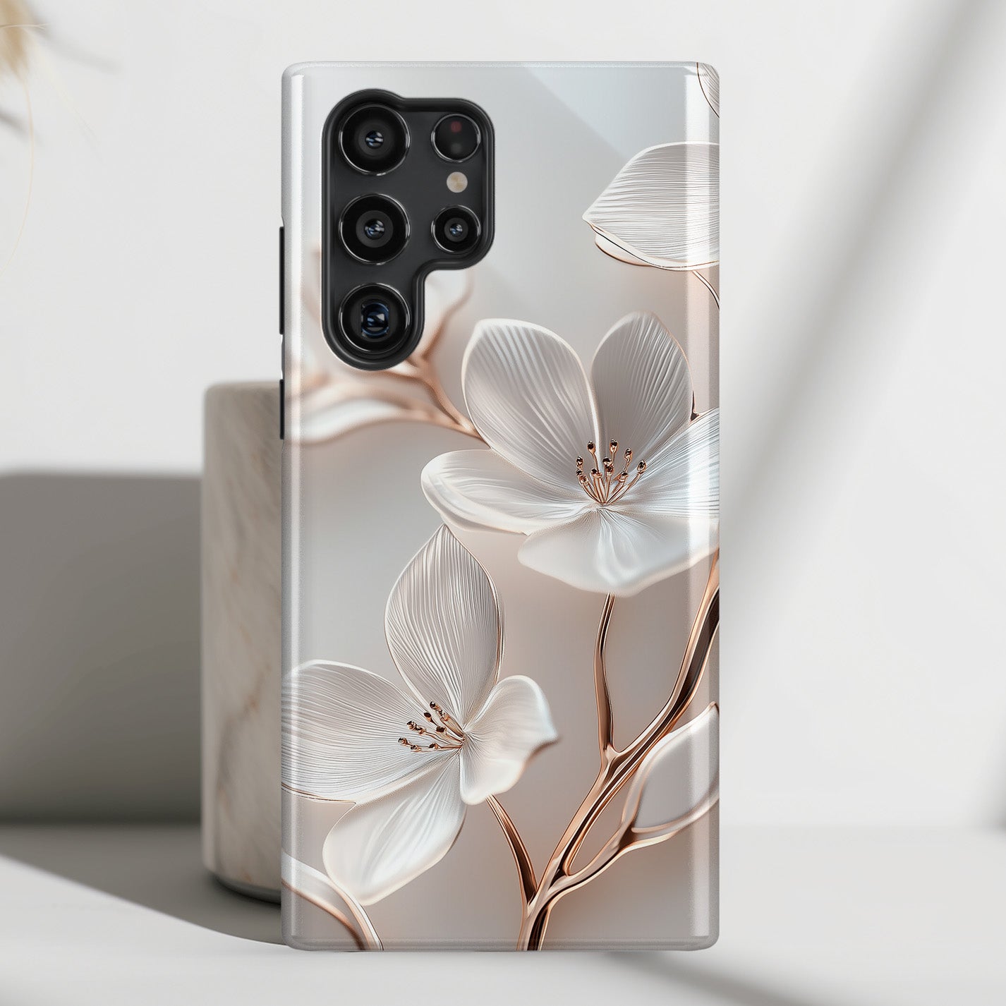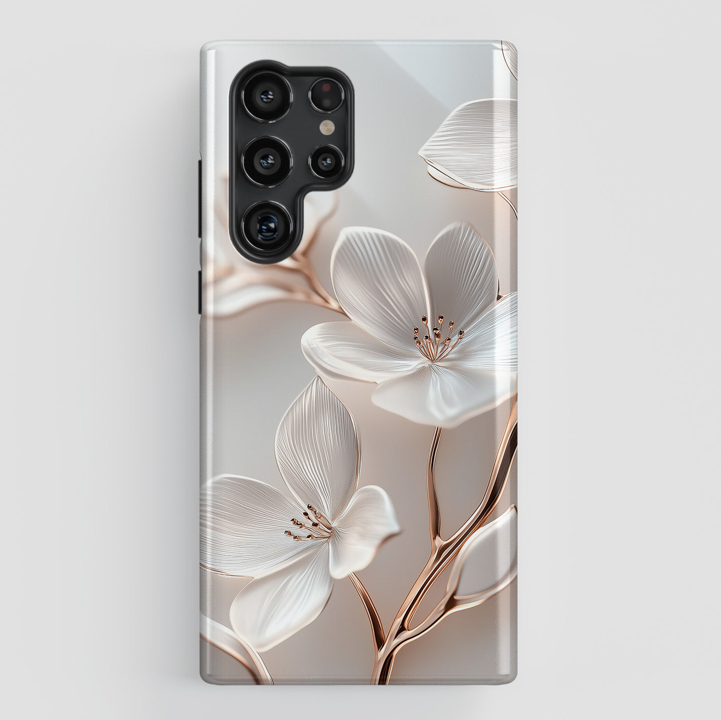 Premium quality protective phone case for Samsung Galaxy S series with Delicate White Floral Design.
