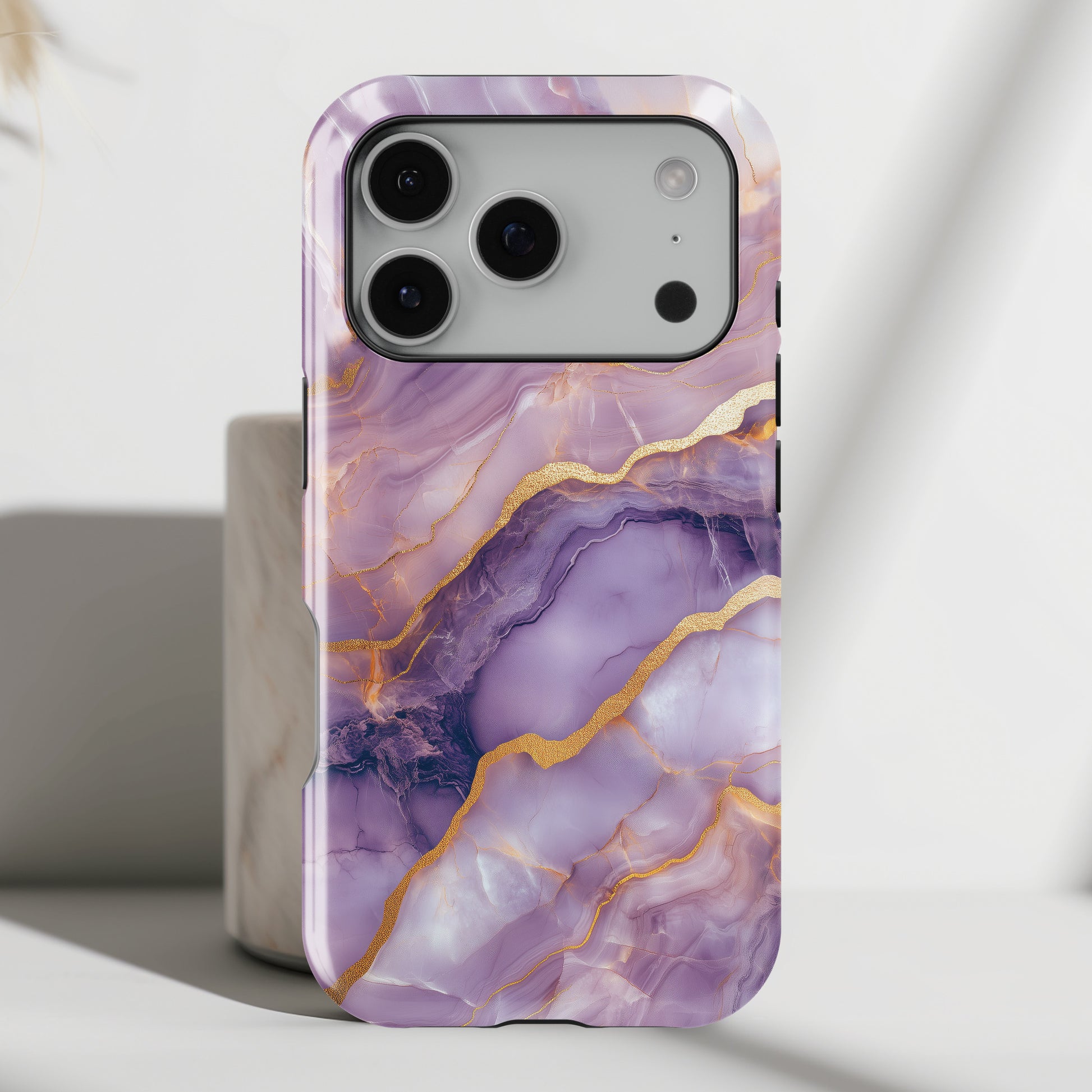Premium quality protective phone case for iPhone with Dreamy Purple Marble design.