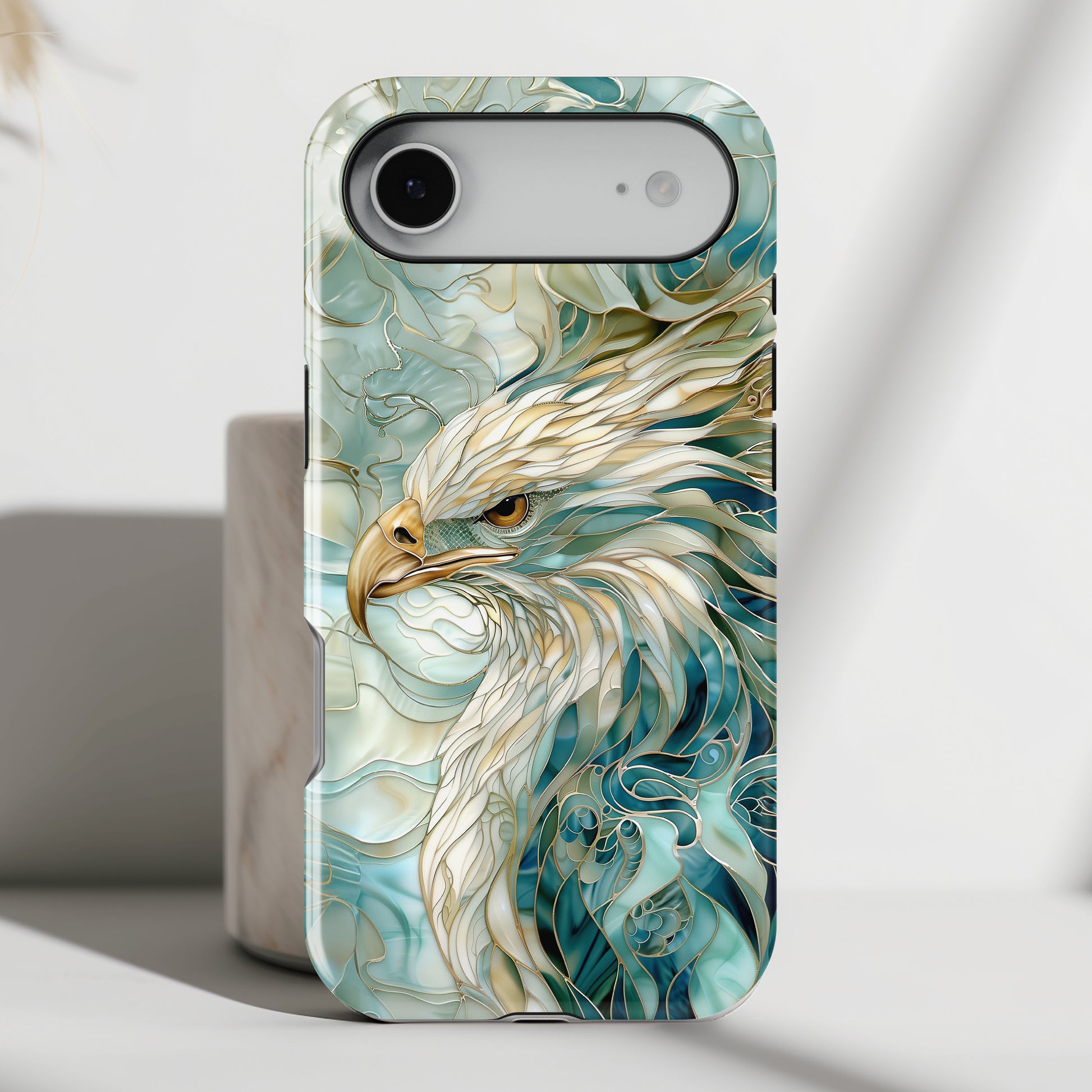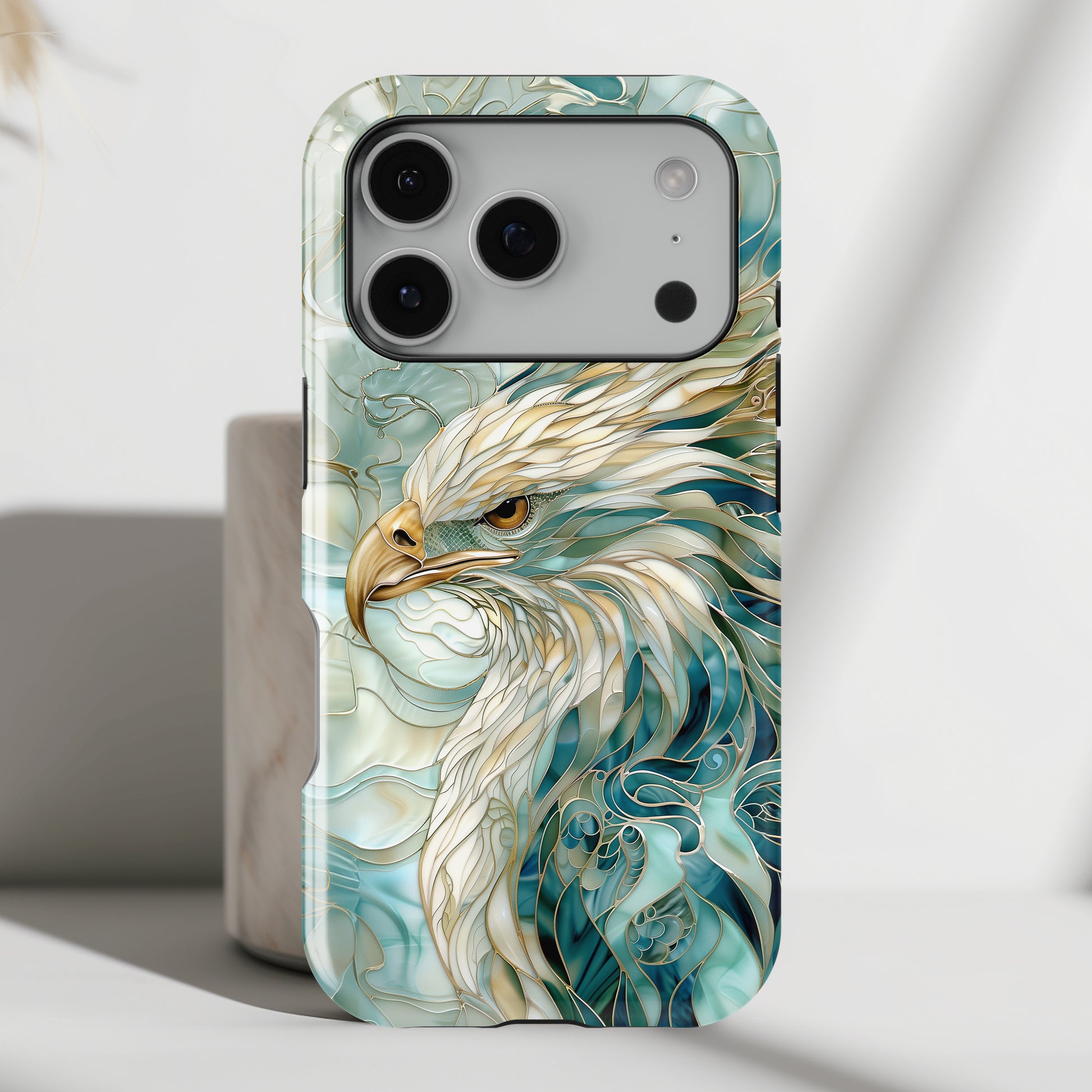 Premium quality protective phone case for iPhone in eagle Stained Glass design.