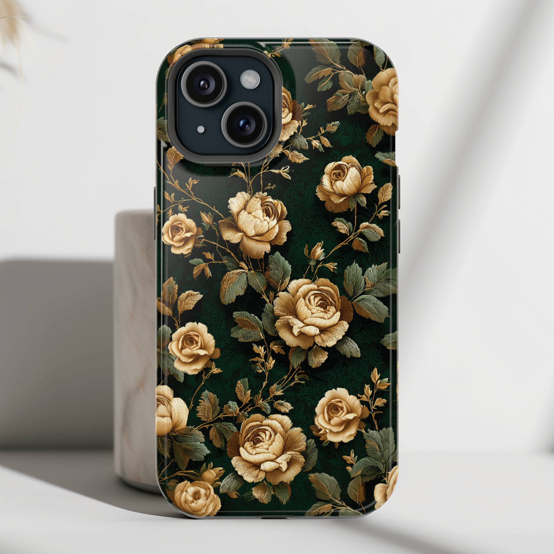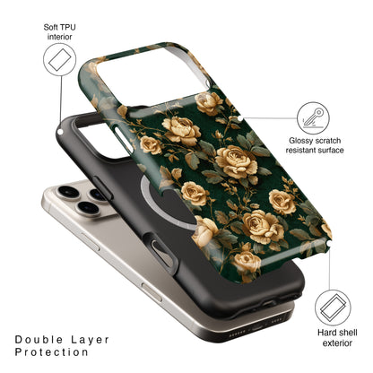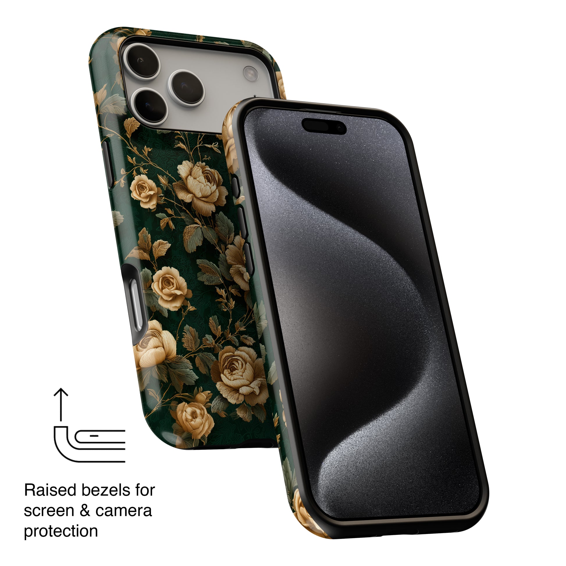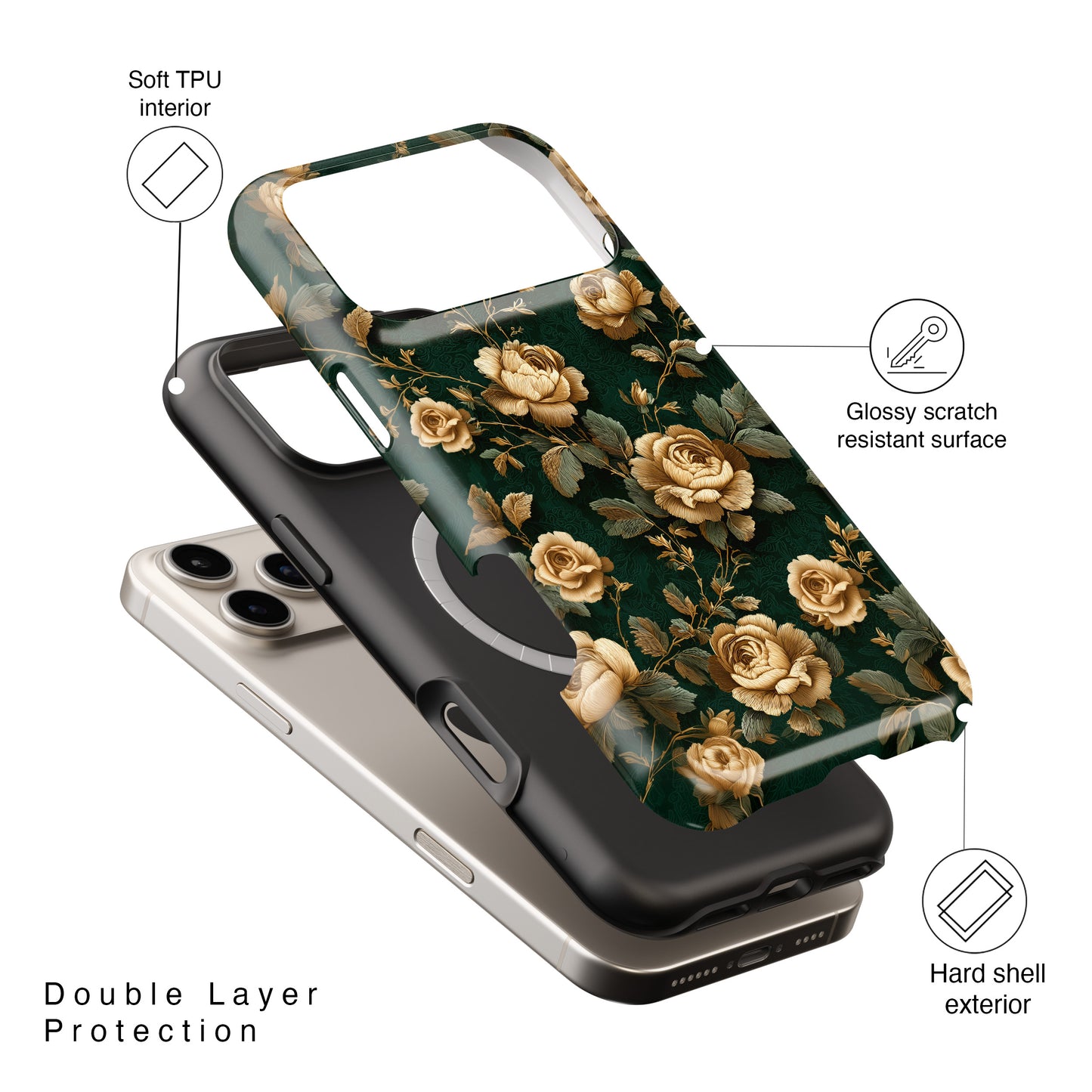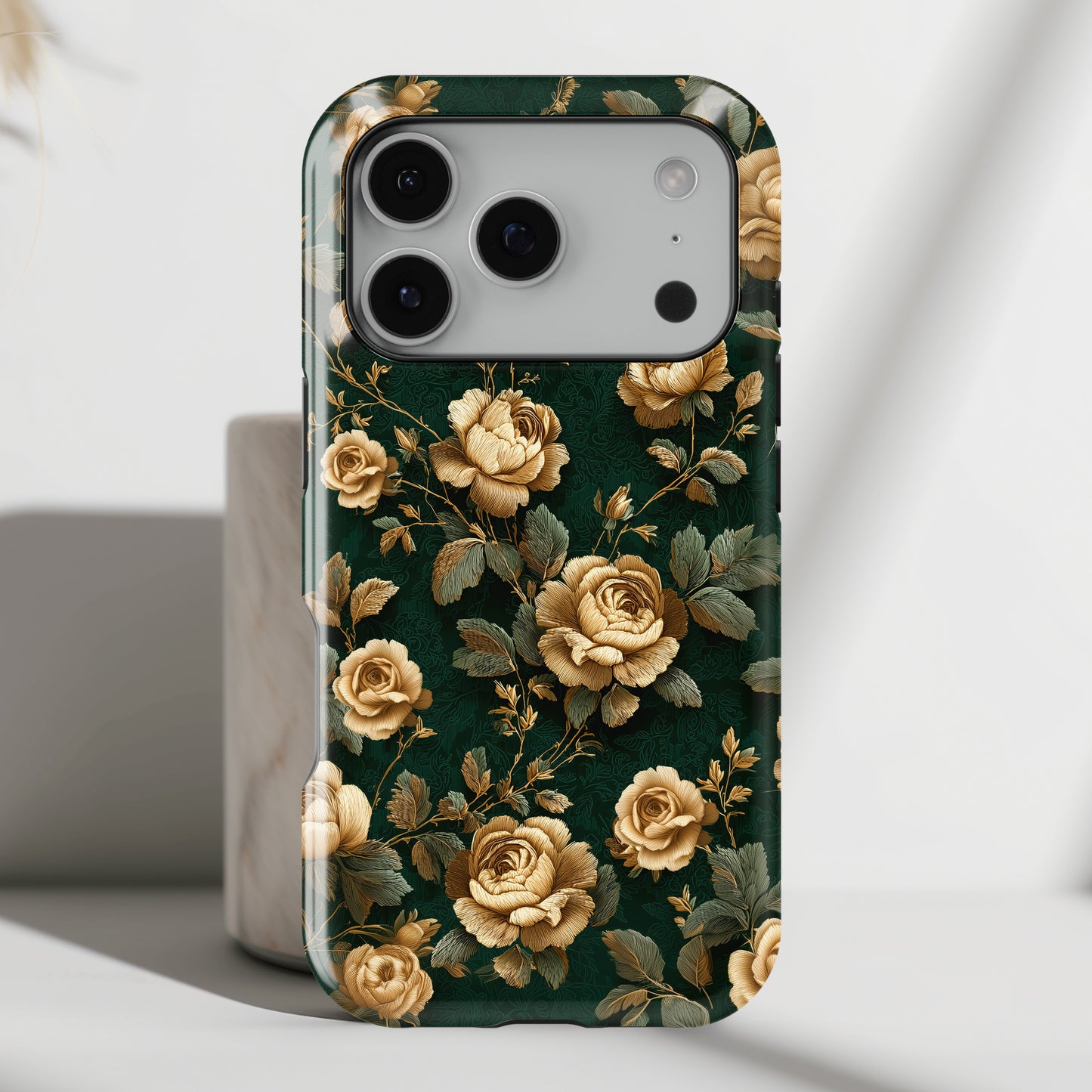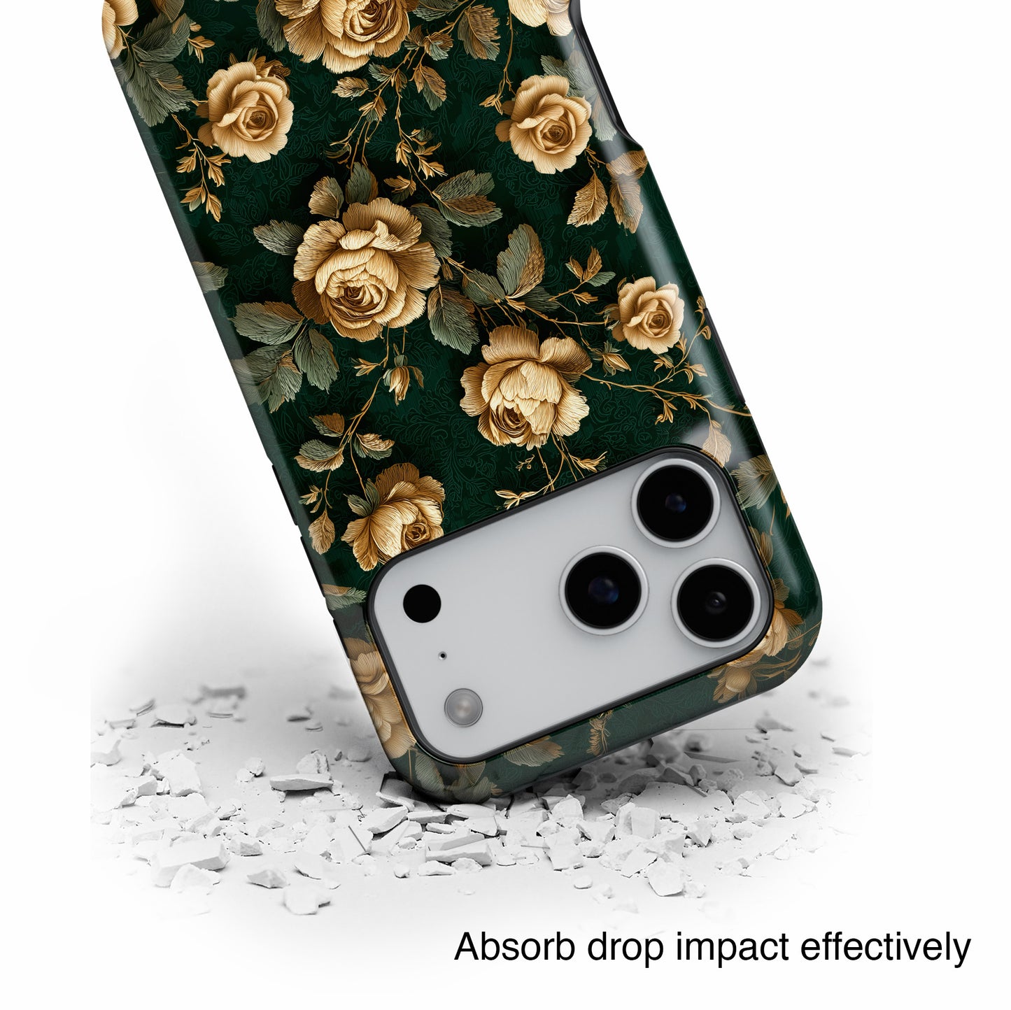 Premium quality protective phone case for iPhone with Emerald Bloom design.
