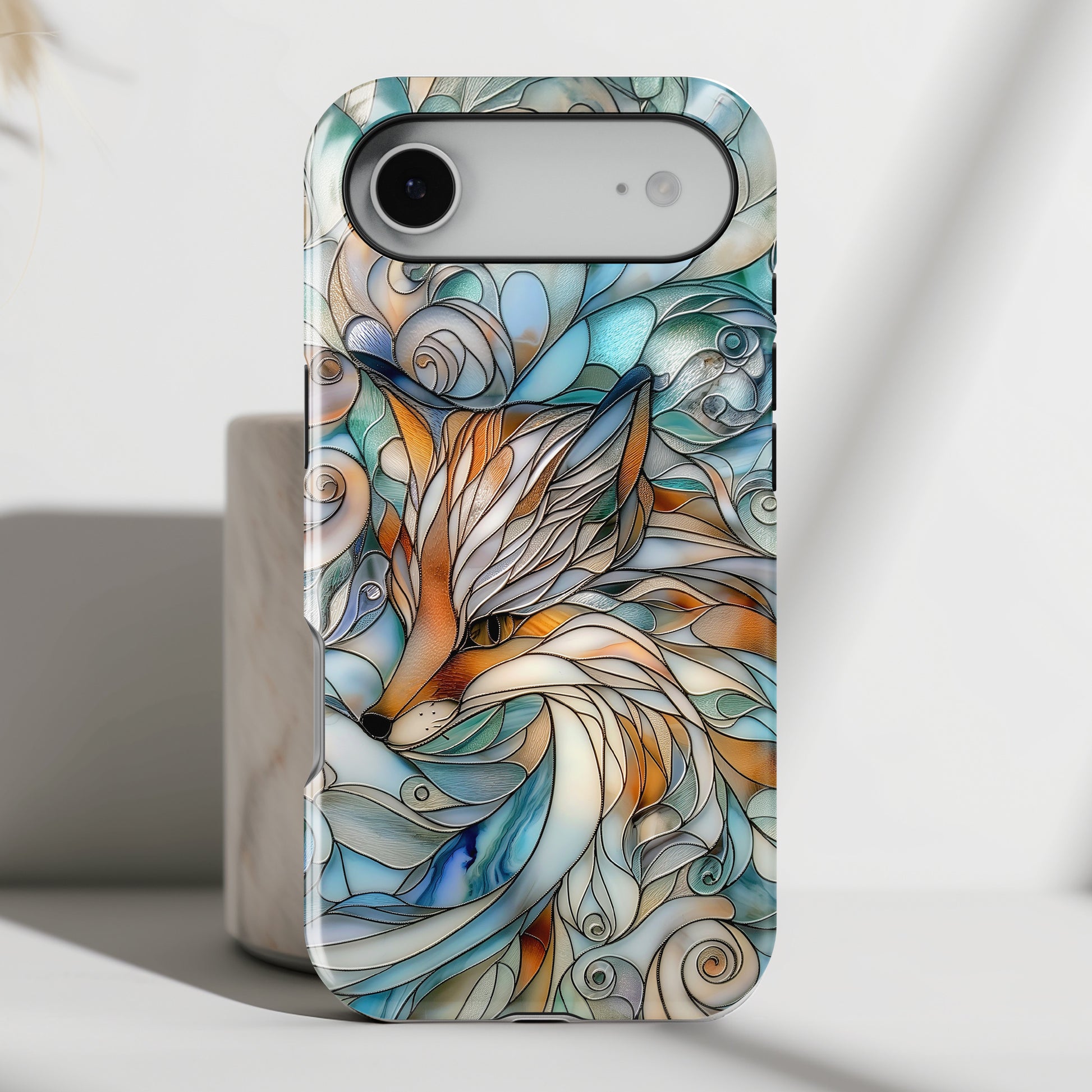 Premium quality protective phone case for iPhone in Fox Stained Glass design.