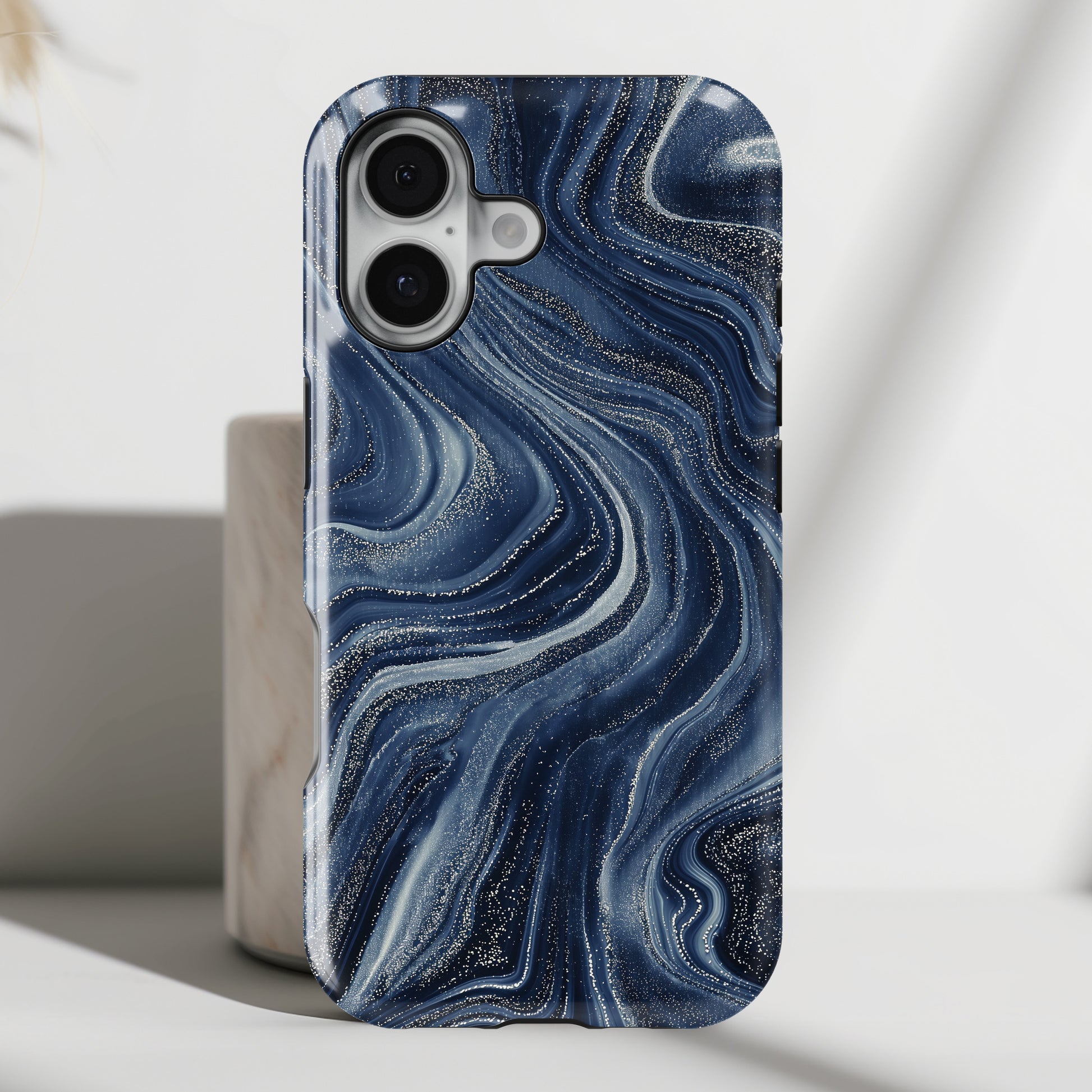 Premium quality protective phone case for iPhone in Galaxy Navy Marble design.
