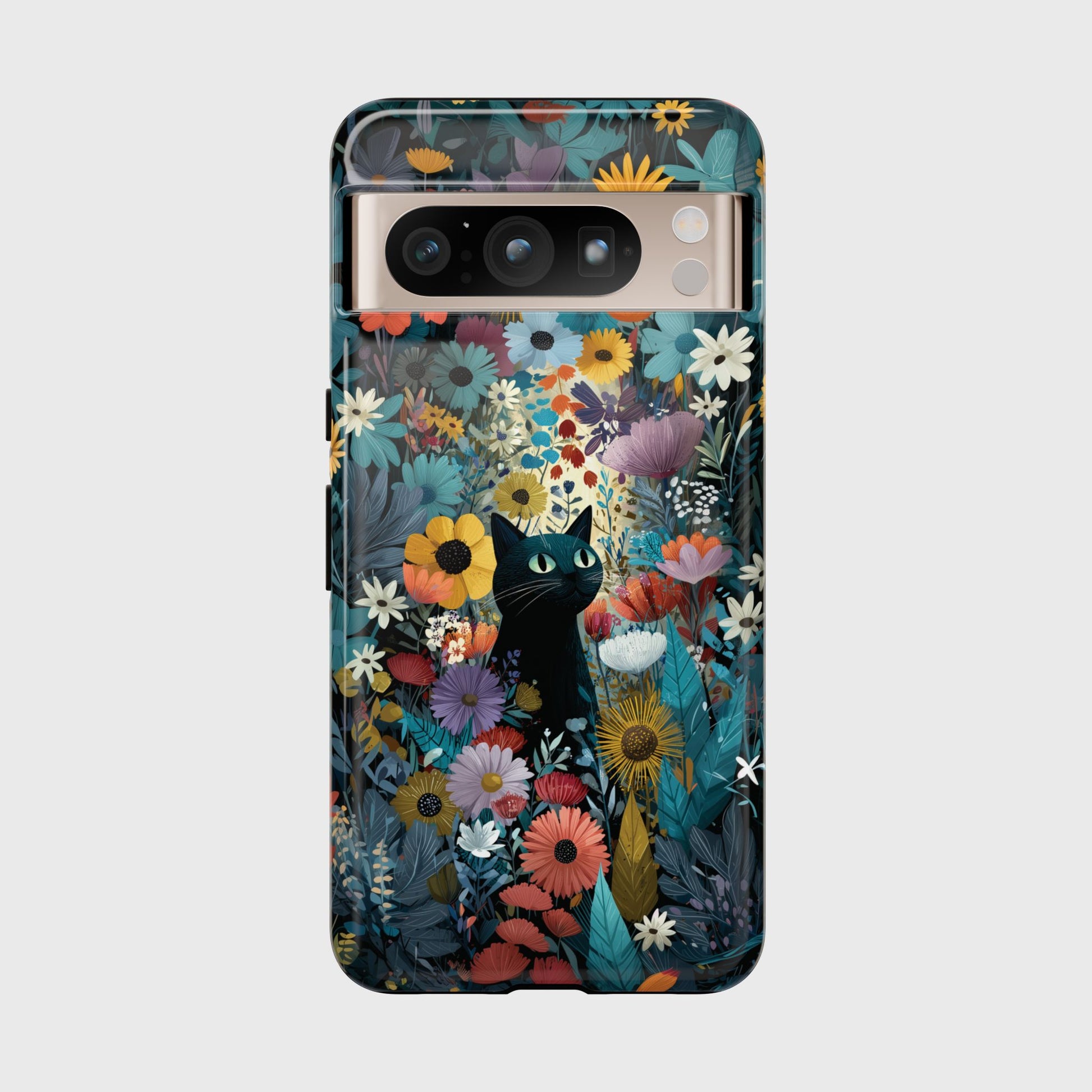 Premium quality protective phone case for Google Pixel series with Garden Kitty Design.