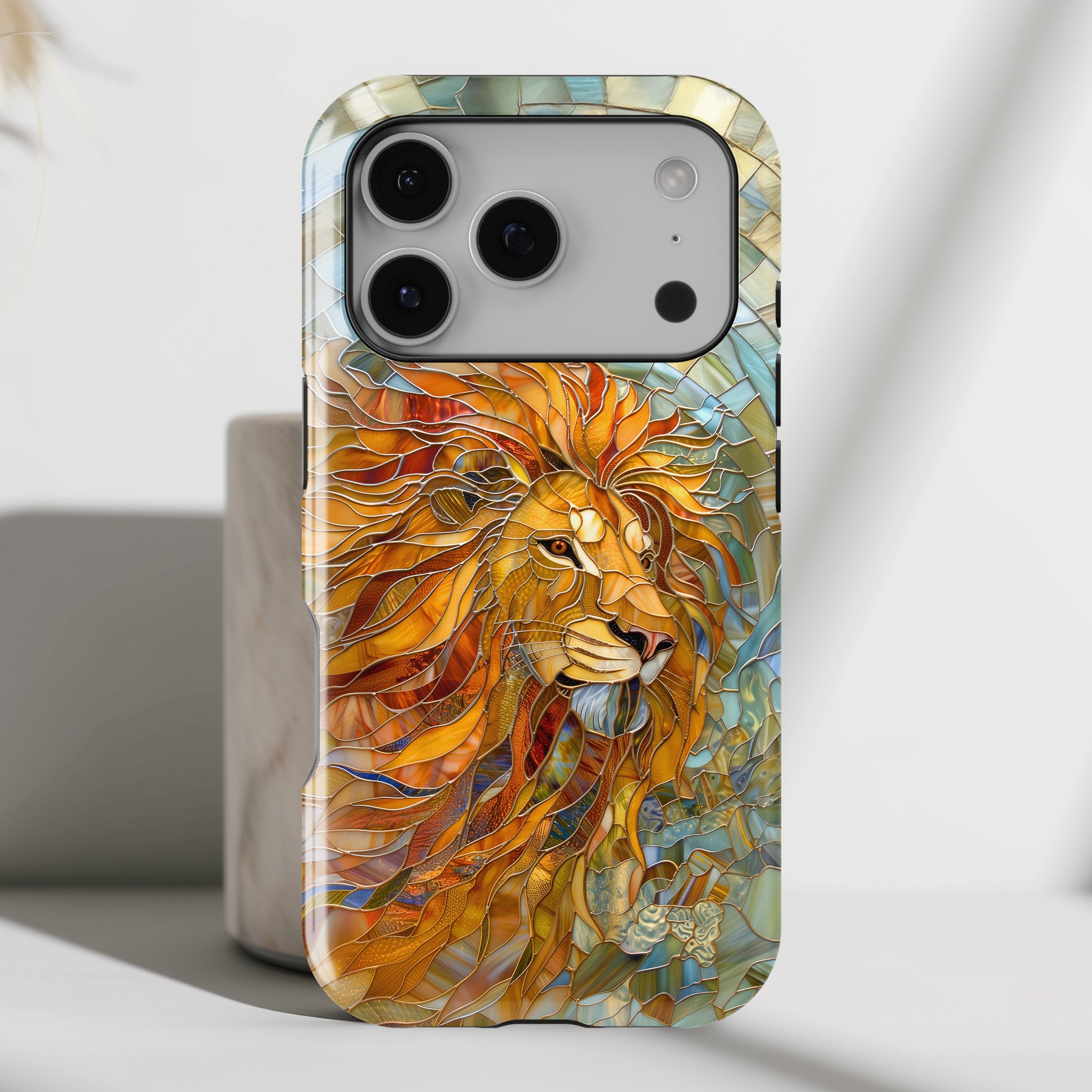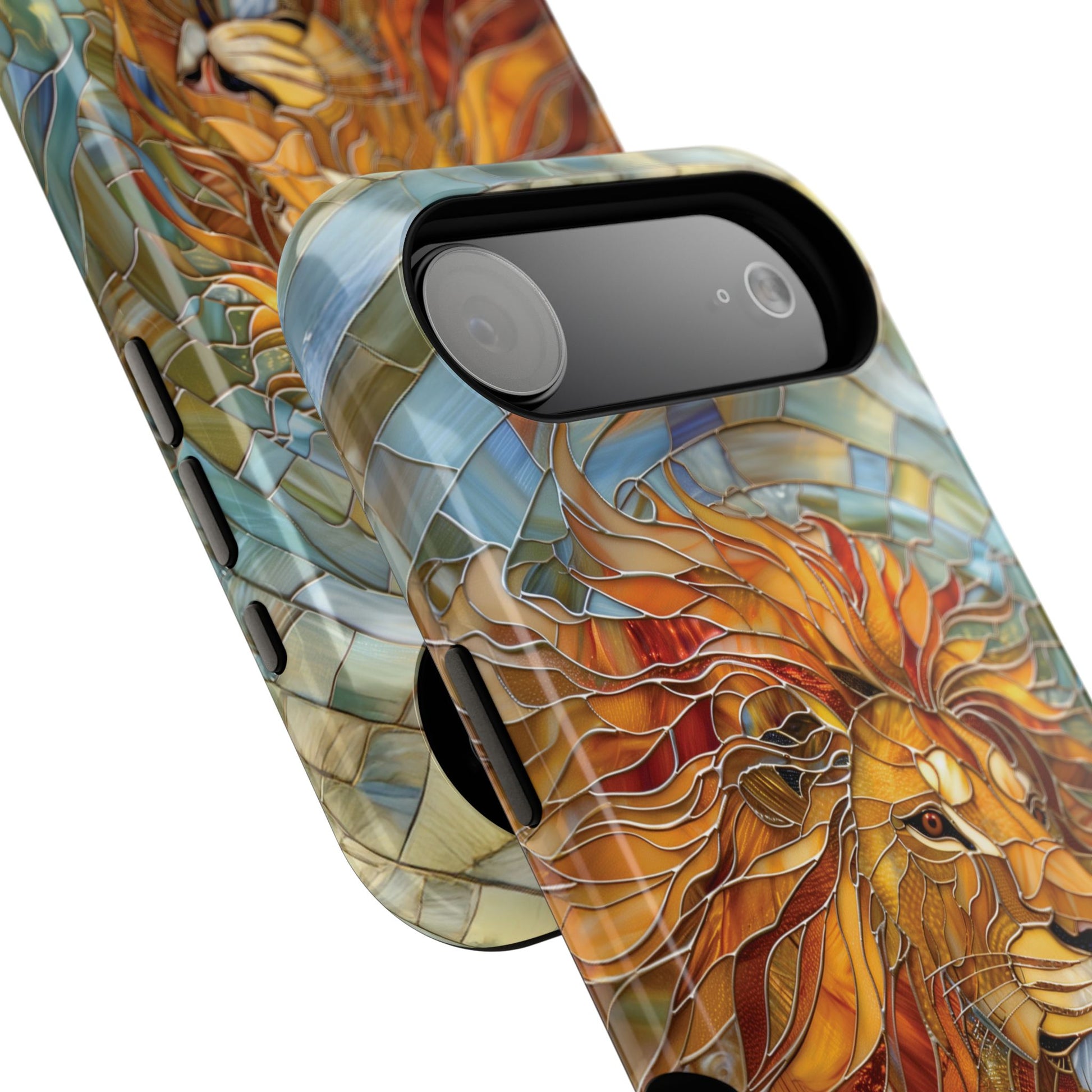 Premium quality protective phone case for iPhone with Lion Stained Glass design.