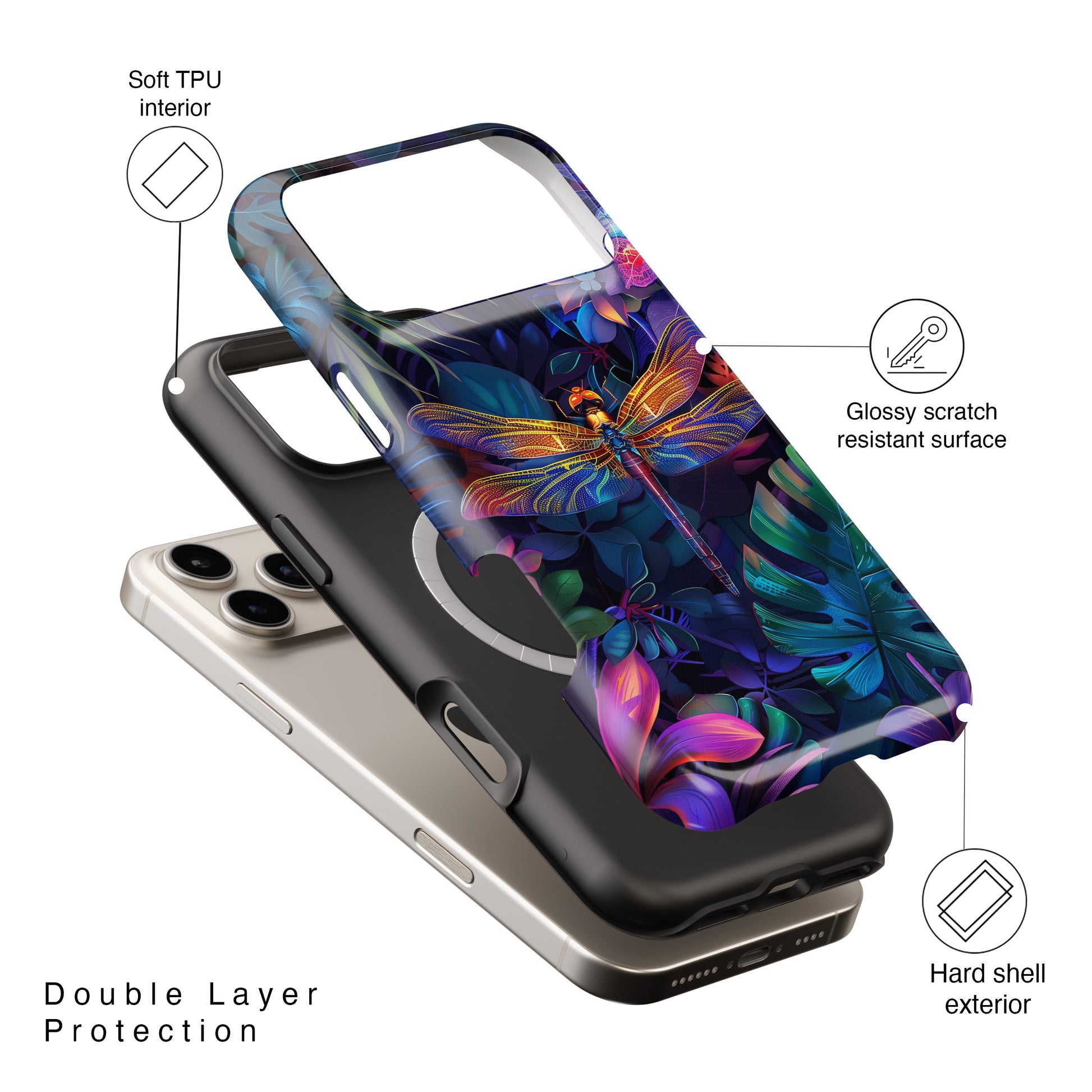 Premium quality protective phone case for iPhone with Magical Dragonfly design.
