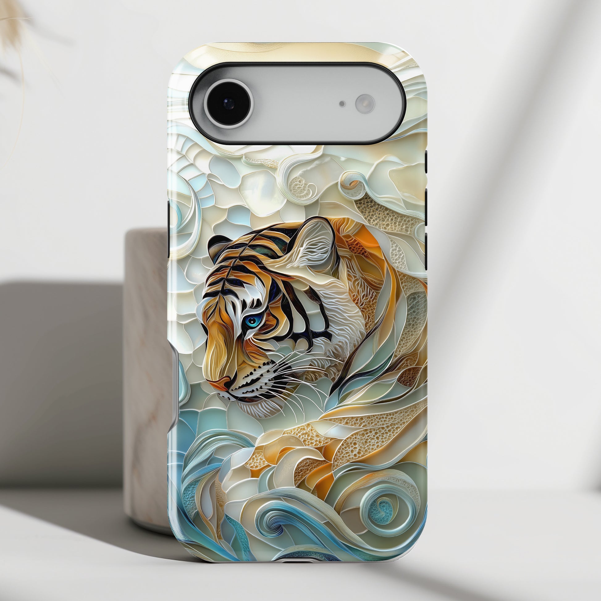 Premium quality protective phone case for iPhone with Majestic Tiger Stained Glass Stained Glass Design.