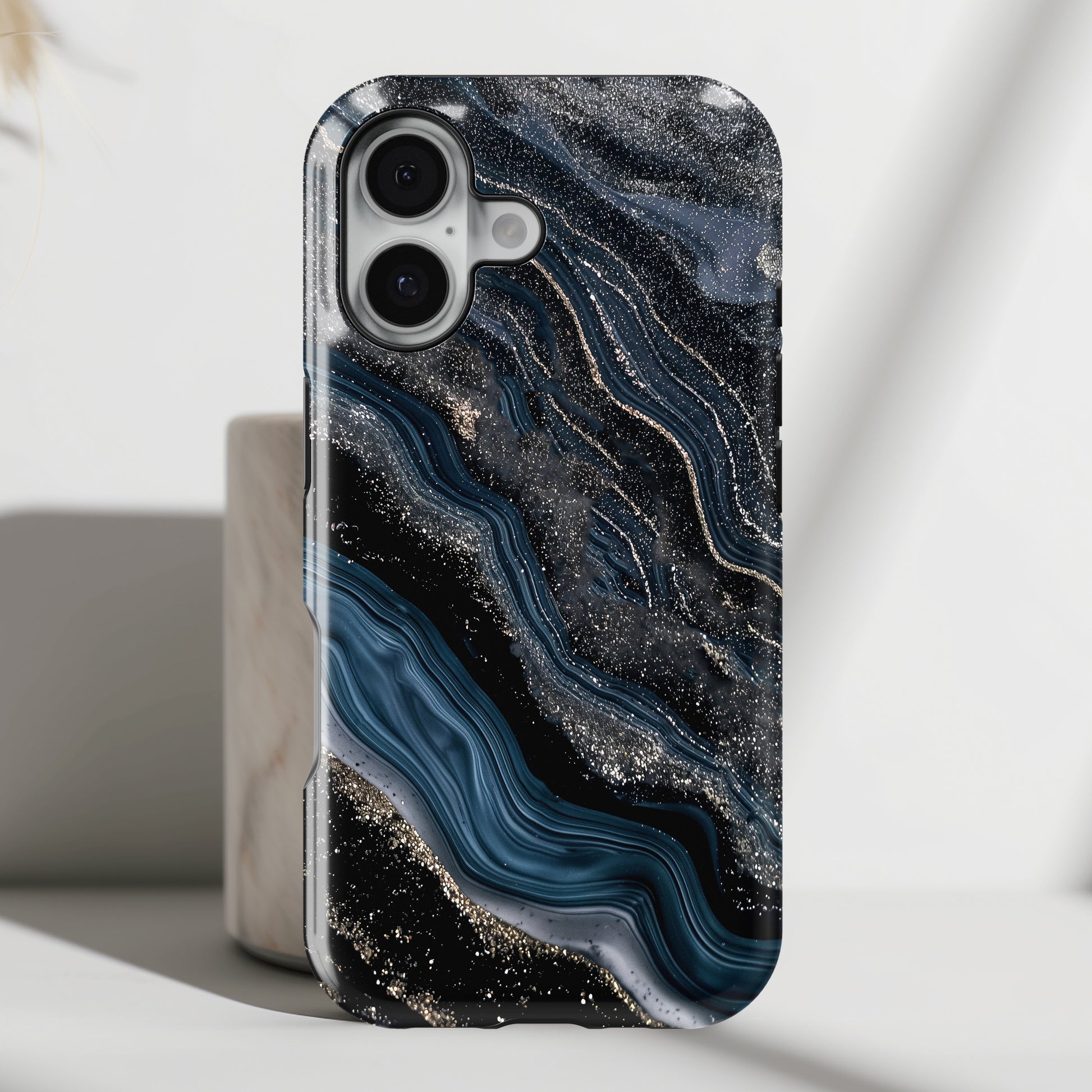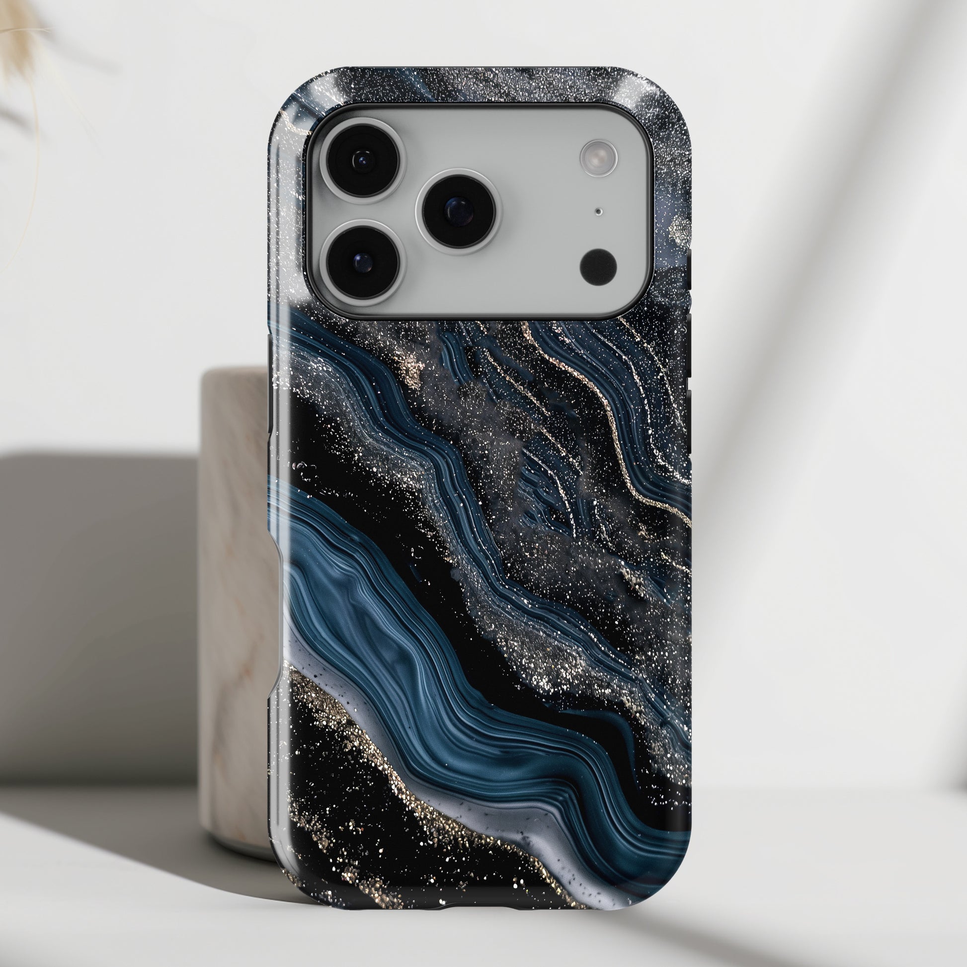 Premium quality protective phone case for iPhone with Midnight River Marble Design.