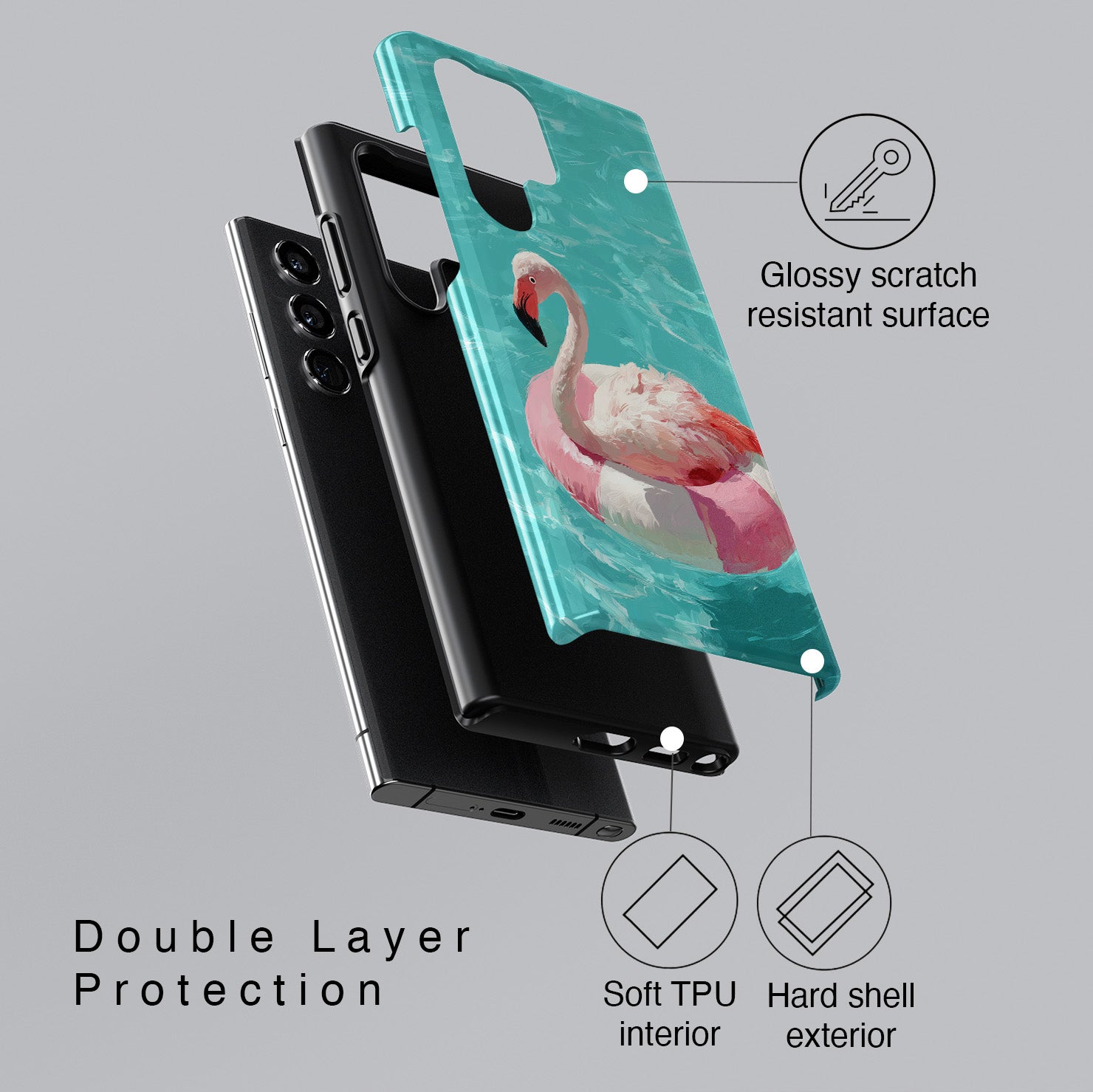Bring the ultimate Palm Springs resort vibe to your everyday tech with "The Poolside Flamingo." This case perfectly bridges the gap between sophisticated fine art and cheeky, vacation-ready humor.