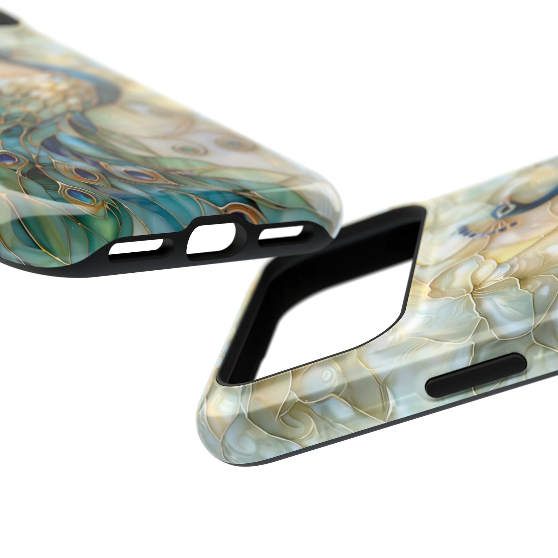 Premium quality protective phone case for iPhone in peacock Stained Glass design.