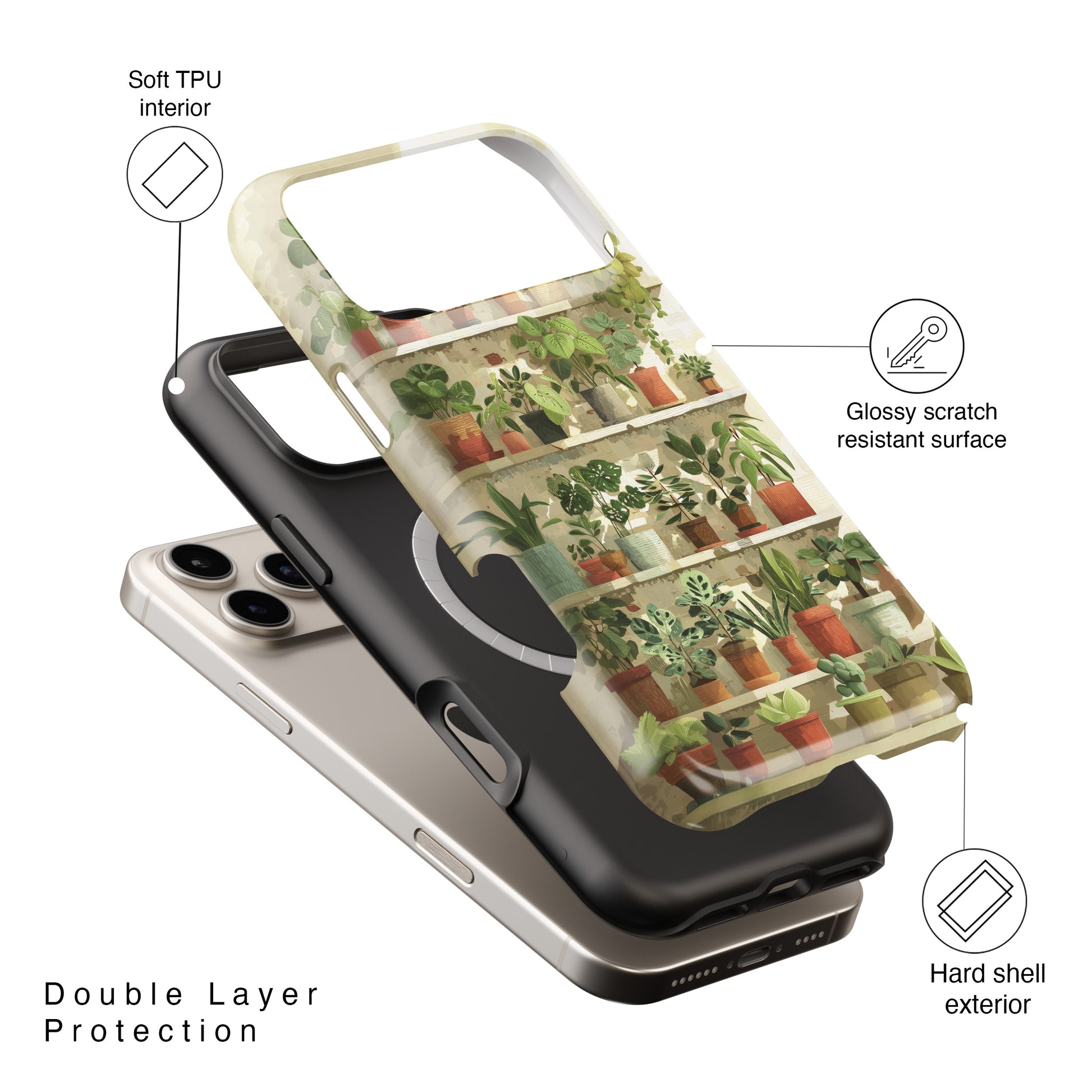 Premium quality protective phone case for iPhone with Potted Plants Shelves Watercolor design.