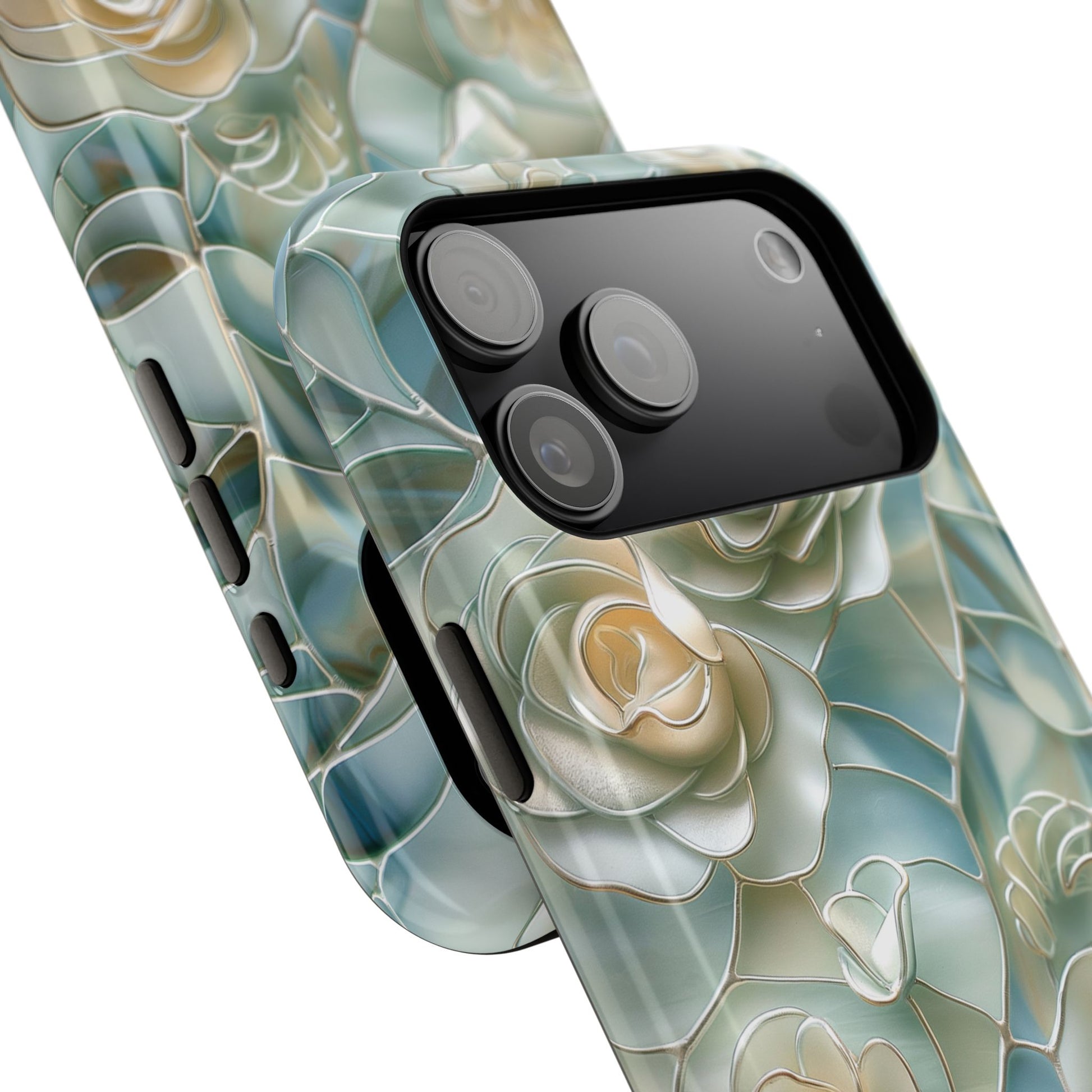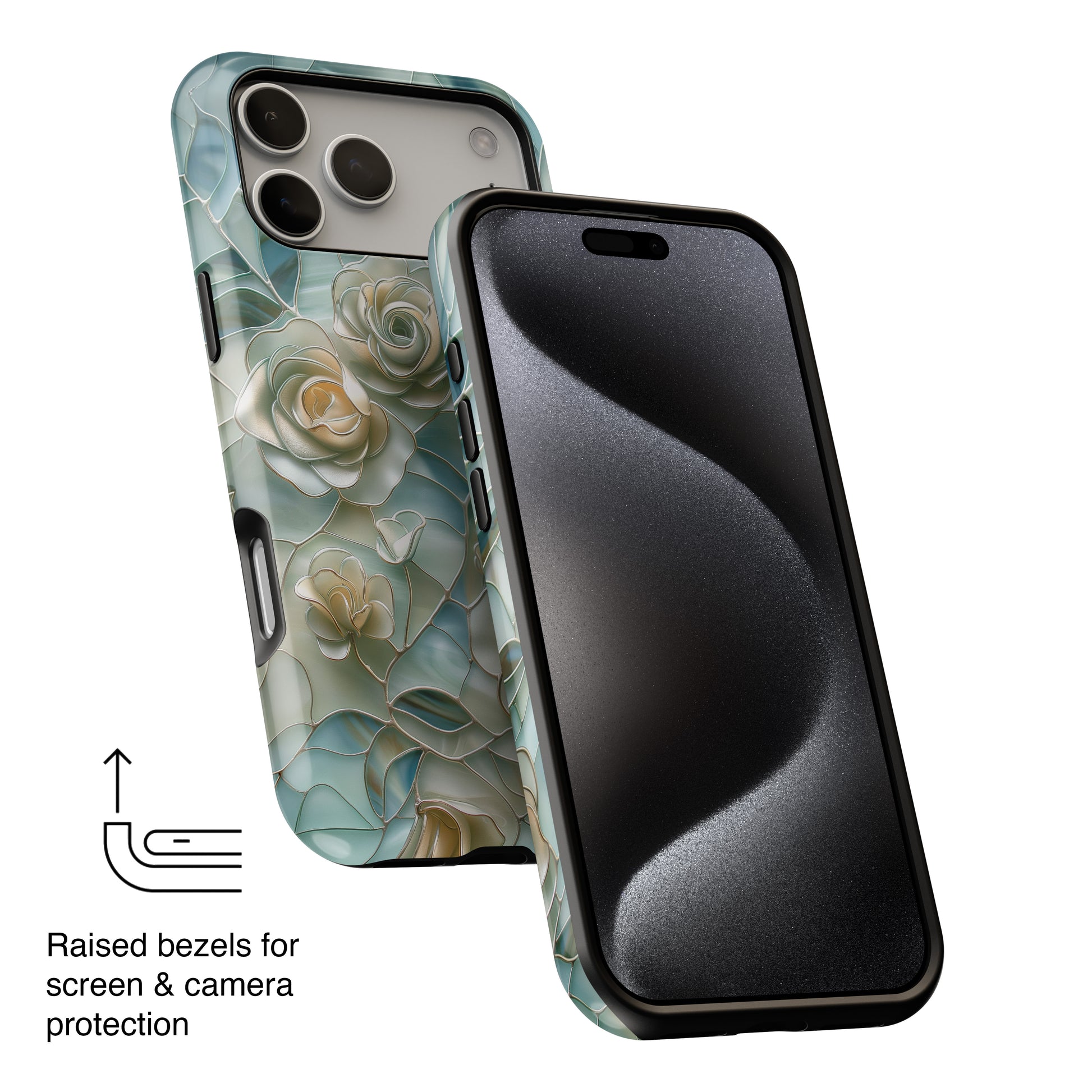 Premium quality protective phone case for iPhone in Roses Stained Glass design.