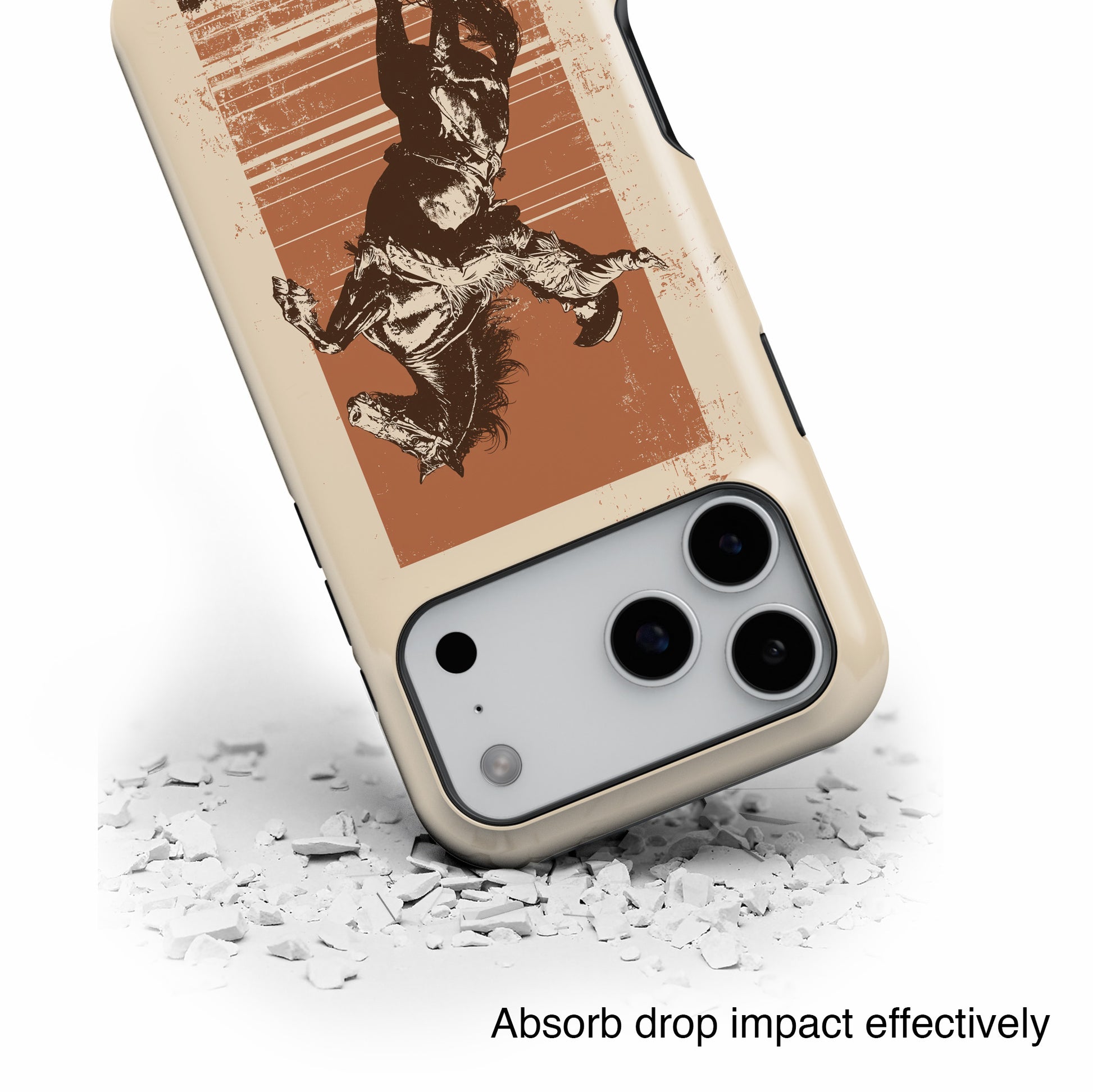 Capture the adrenaline of the 8-second ride. "Rust & Dust" is a nod to the golden era of the rodeo. Featuring a striking graphic of a cowboy taming a wild horse, this case feels less like a phone accessory and more like a piece of American history.