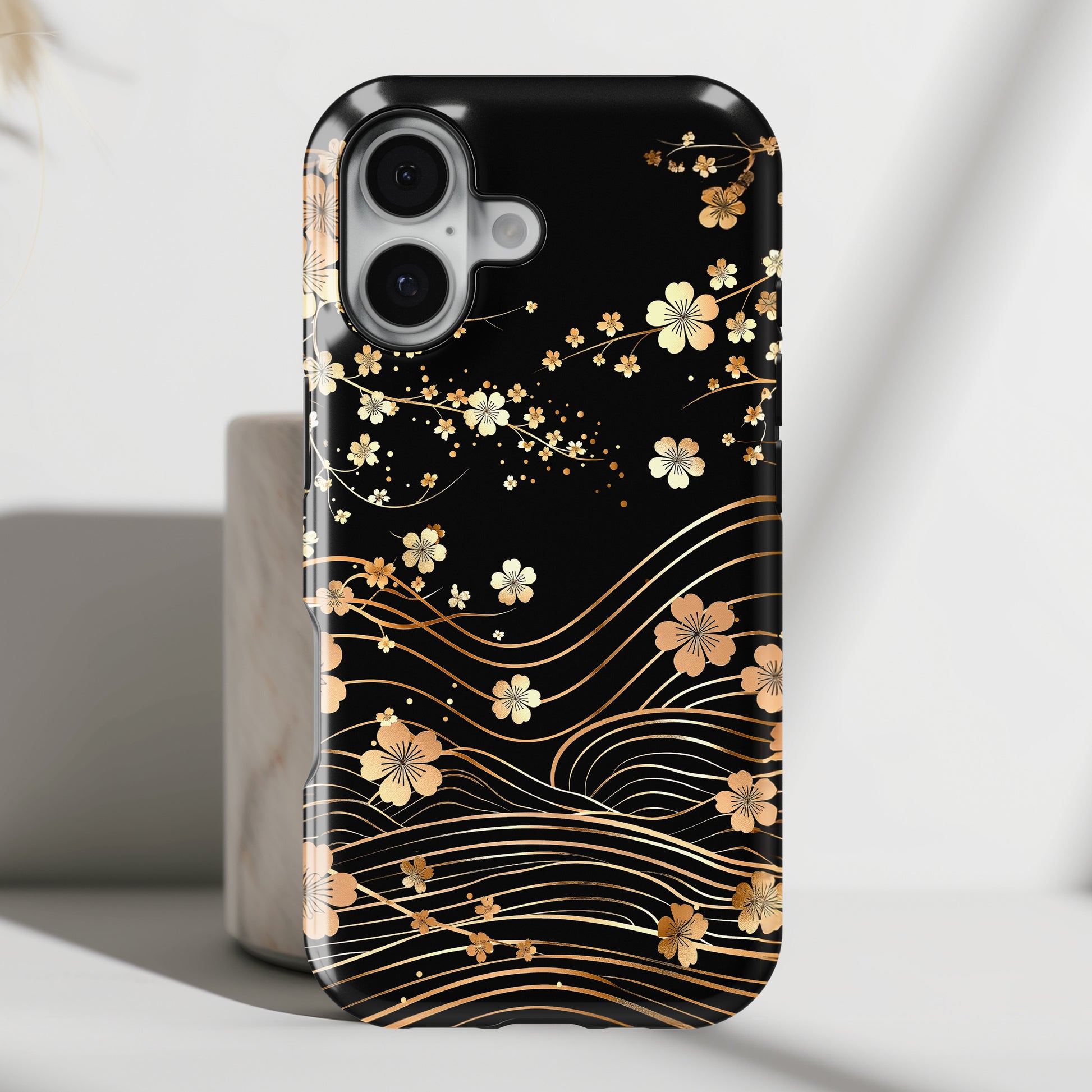 Premium quality protective phone case for iPhone in Sakura Wave Japanese Art design.