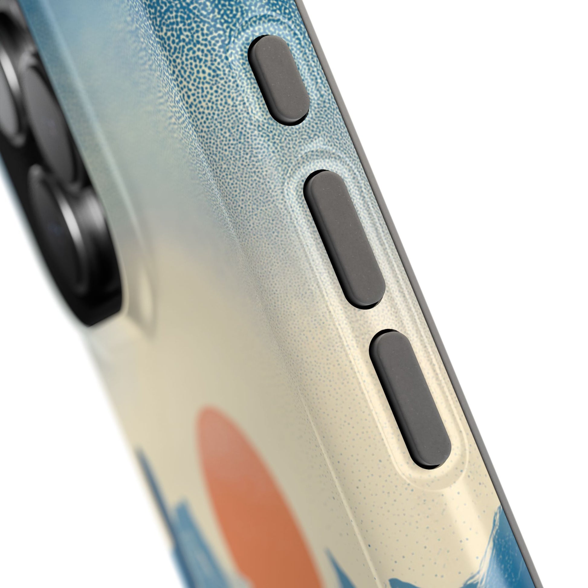 The stippled texture and soft peach-to-blue gradient give it a vintage, screen-printed look that feels like a badge of honor from your favorite National Park road trip. Whether you're hiking a canyon or just grabbing coffee, keep the spirit of the west in your pocket.