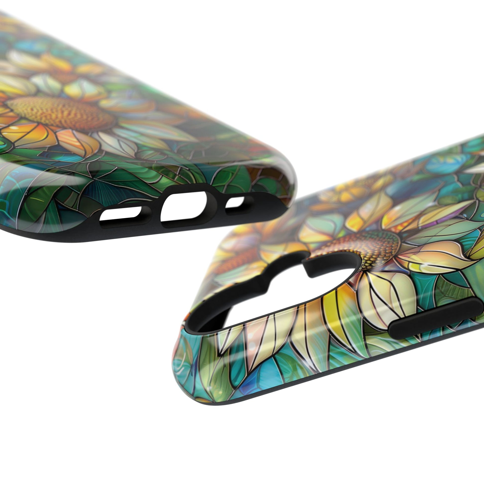 Premium quality protective phone case for iPhone in Sunflowers Stained Glass design.