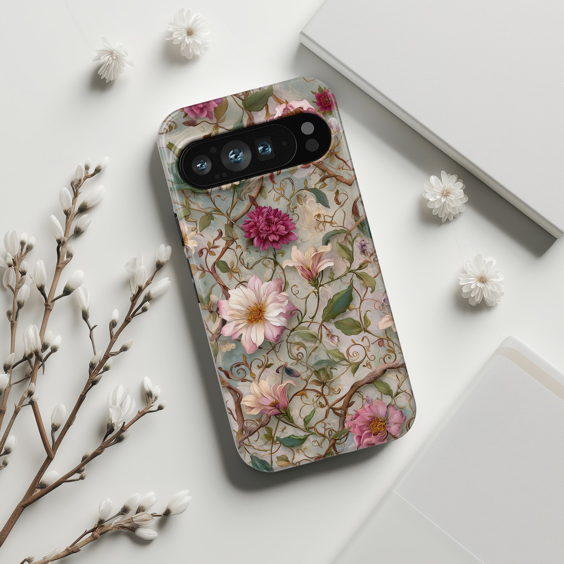 Premium quality protective phone case for Google Pixel series with Victorian Vine Design.