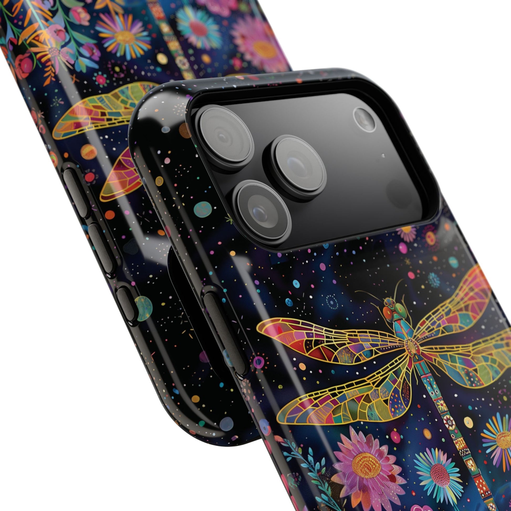 Premium quality protective phone case for iPhone with Whimsical Dragonfly Folk Art Style design.